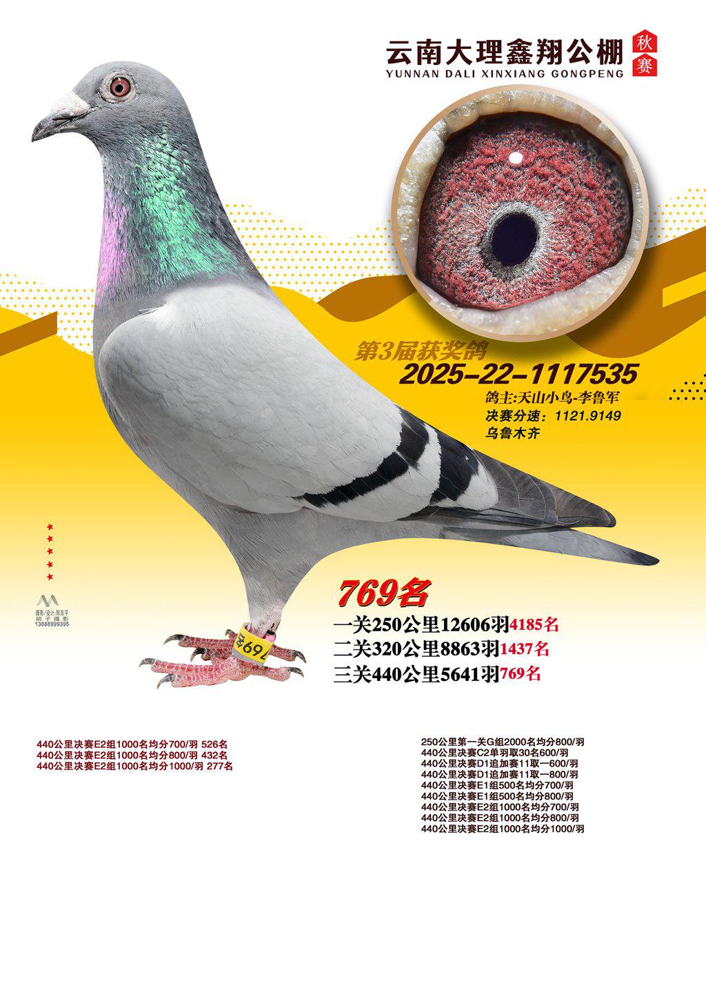 位置:云南大理鑫翔公棚2025获奖鸽展示\769名