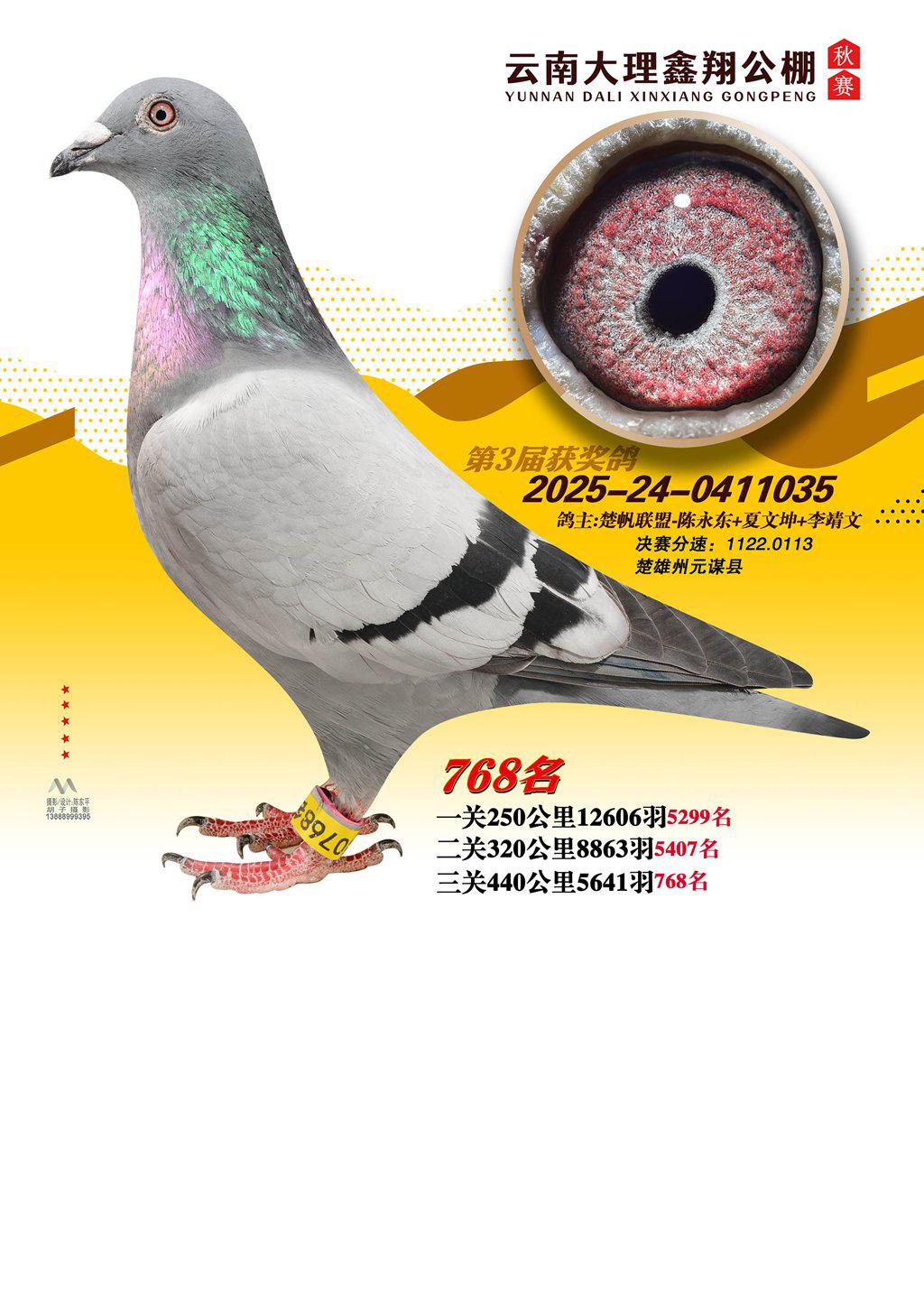 位置:云南大理鑫翔公棚2025获奖鸽展示\768名