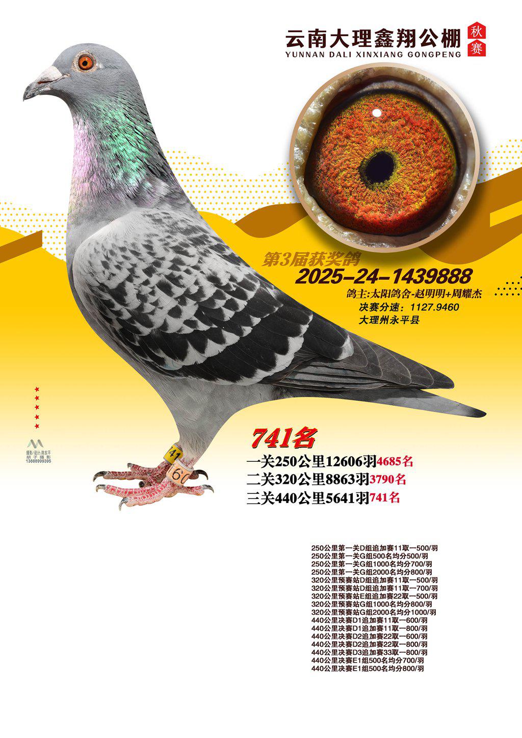 位置:云南大理鑫翔公棚2025获奖鸽展示\741名