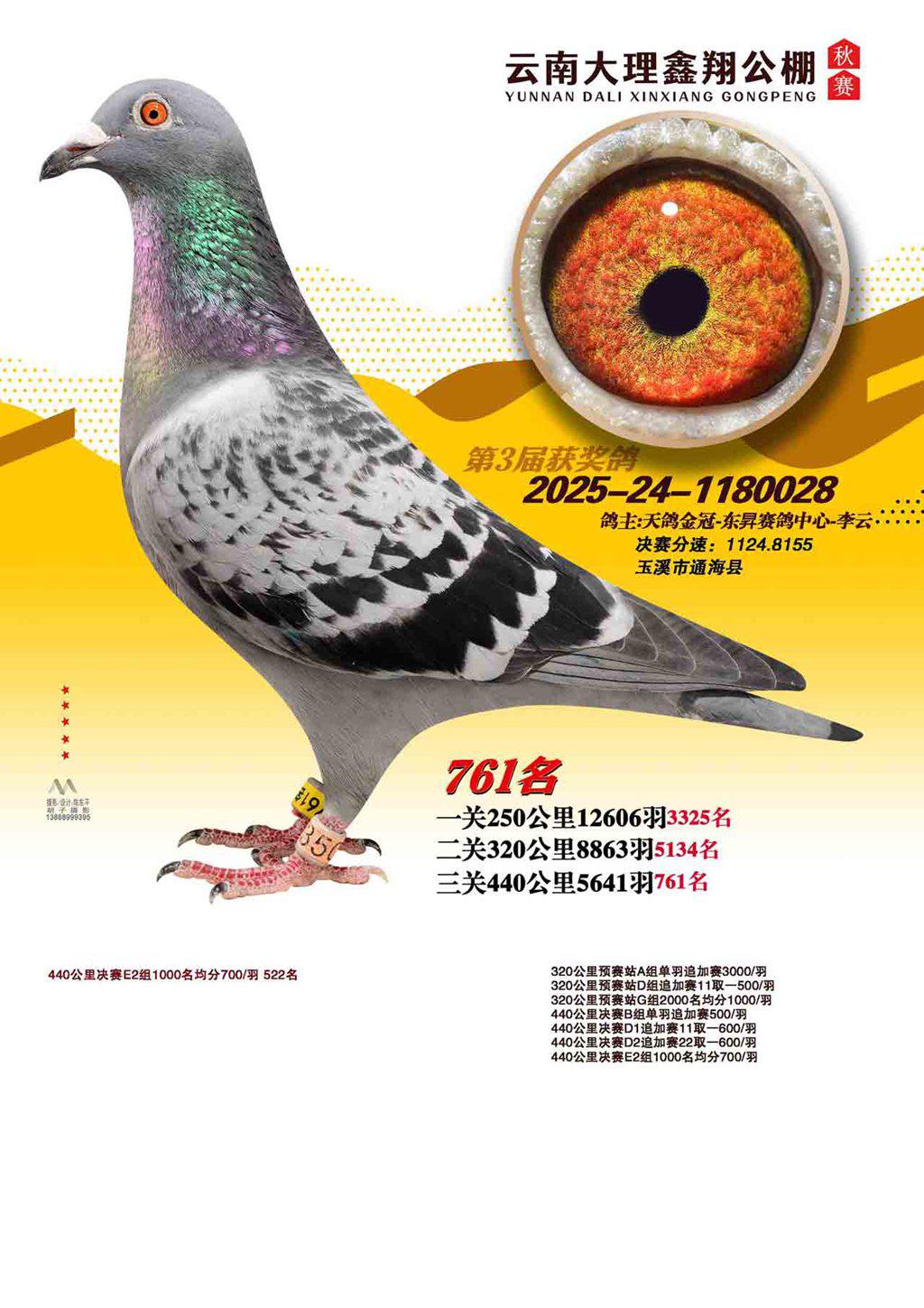 位置:云南大理鑫翔公棚2025获奖鸽展示\761名