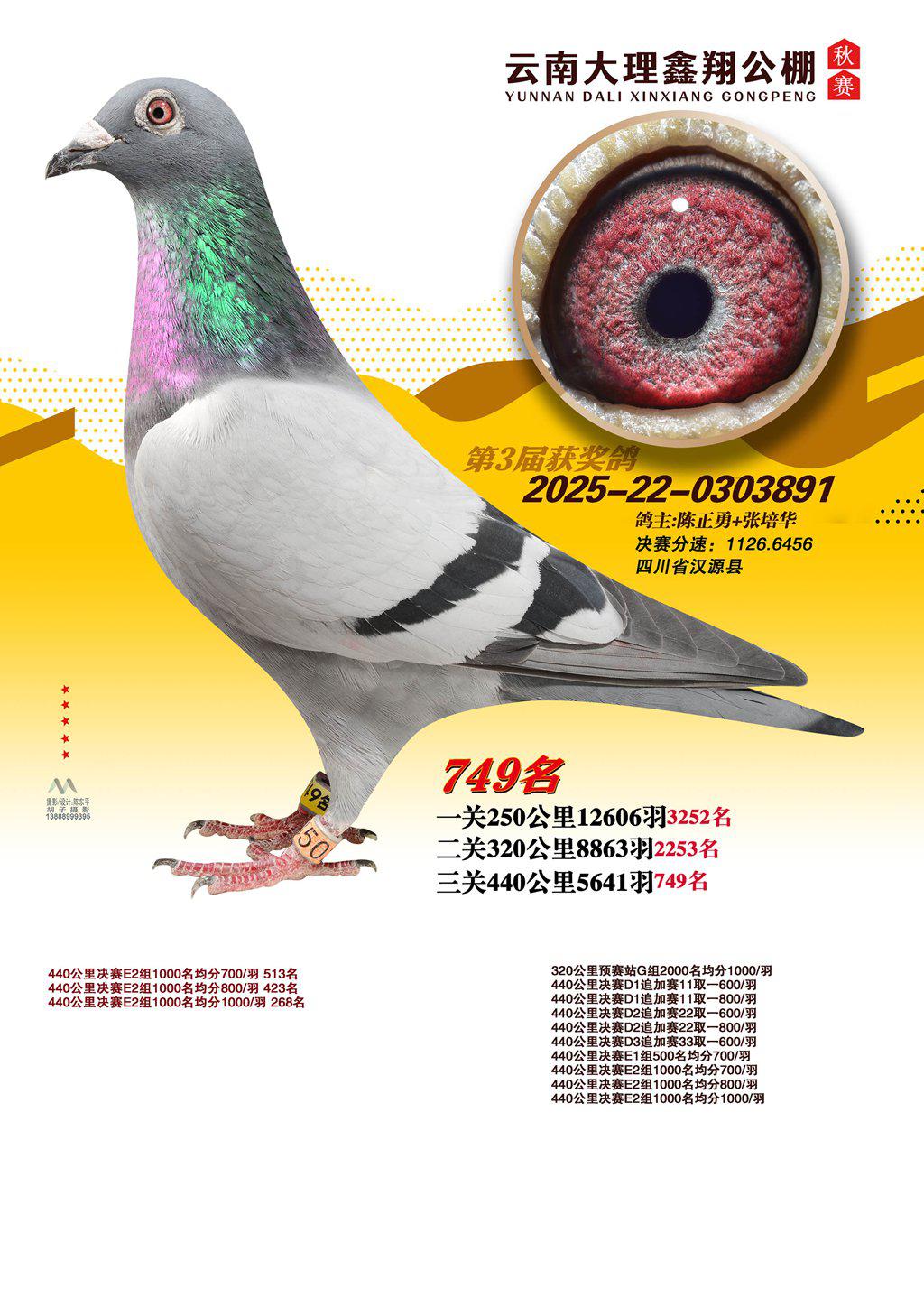 位置:云南大理鑫翔公棚2025获奖鸽展示\749名