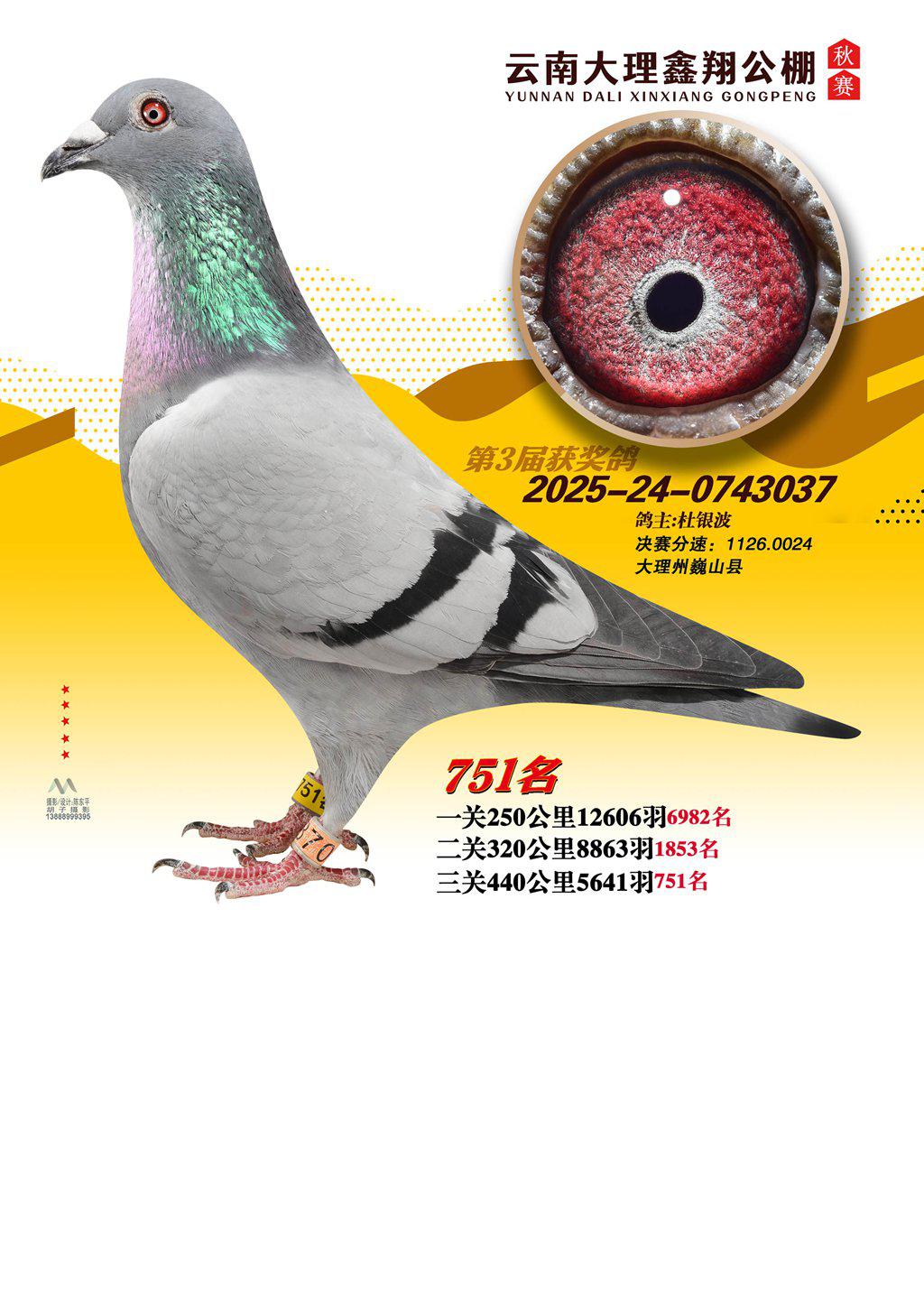 位置:云南大理鑫翔公棚2025获奖鸽展示\751名