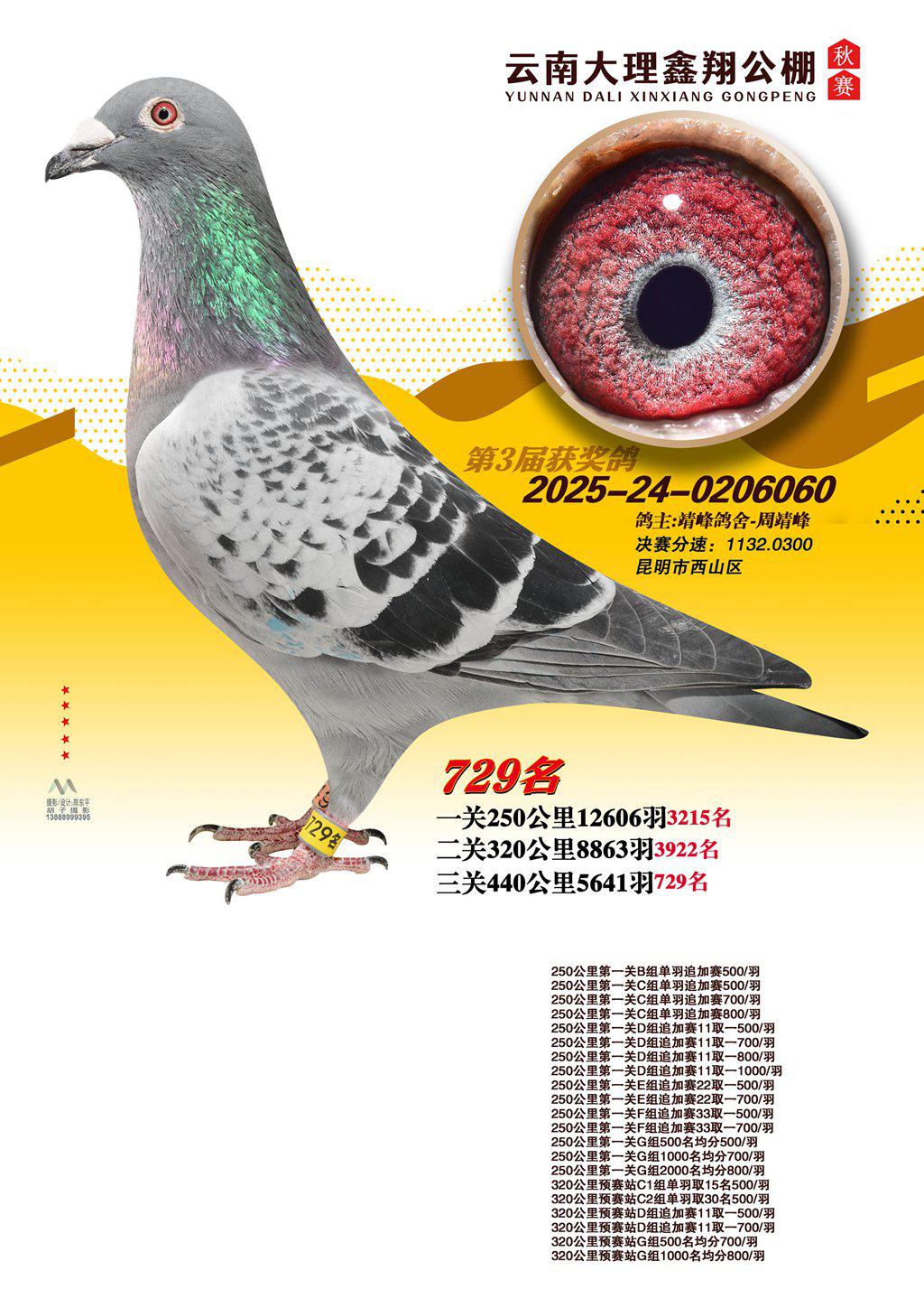 位置:云南大理鑫翔公棚2025获奖鸽展示\729名
