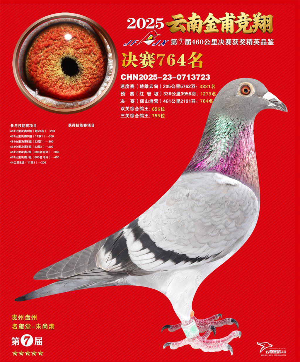 位置:云南金甫竞翔体育发展有限公司2025获奖鸽展示\金甫764名