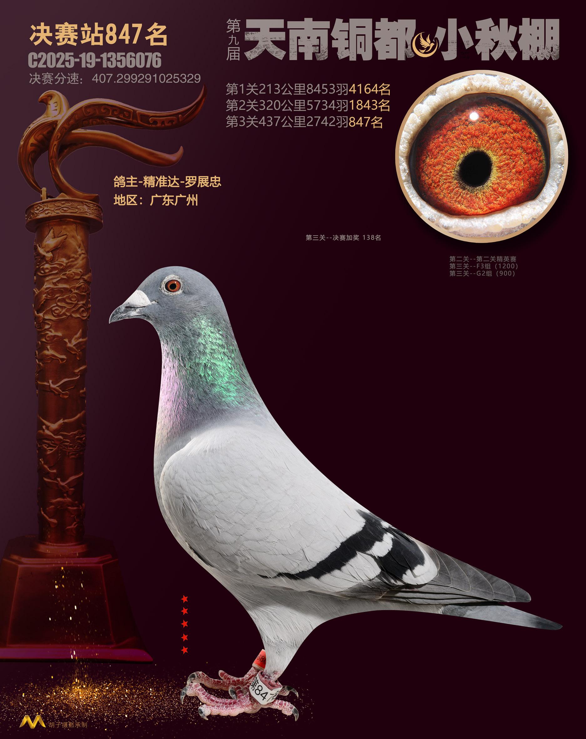 位置:云南天南铜都小棚(小秋棚)2025获奖鸽展示\决赛站847名