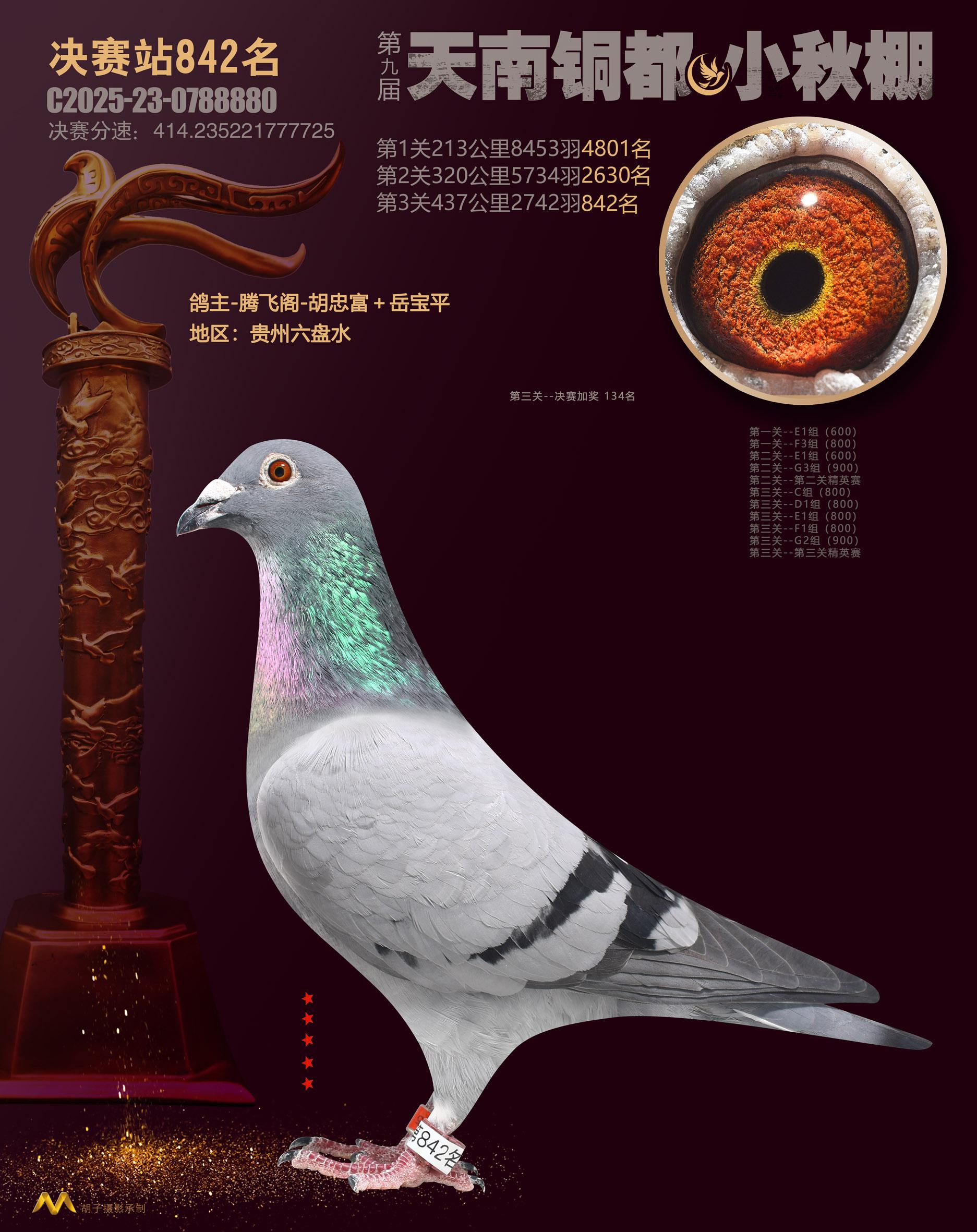 位置:云南天南铜都小棚(小秋棚)2025获奖鸽展示\决赛站842名