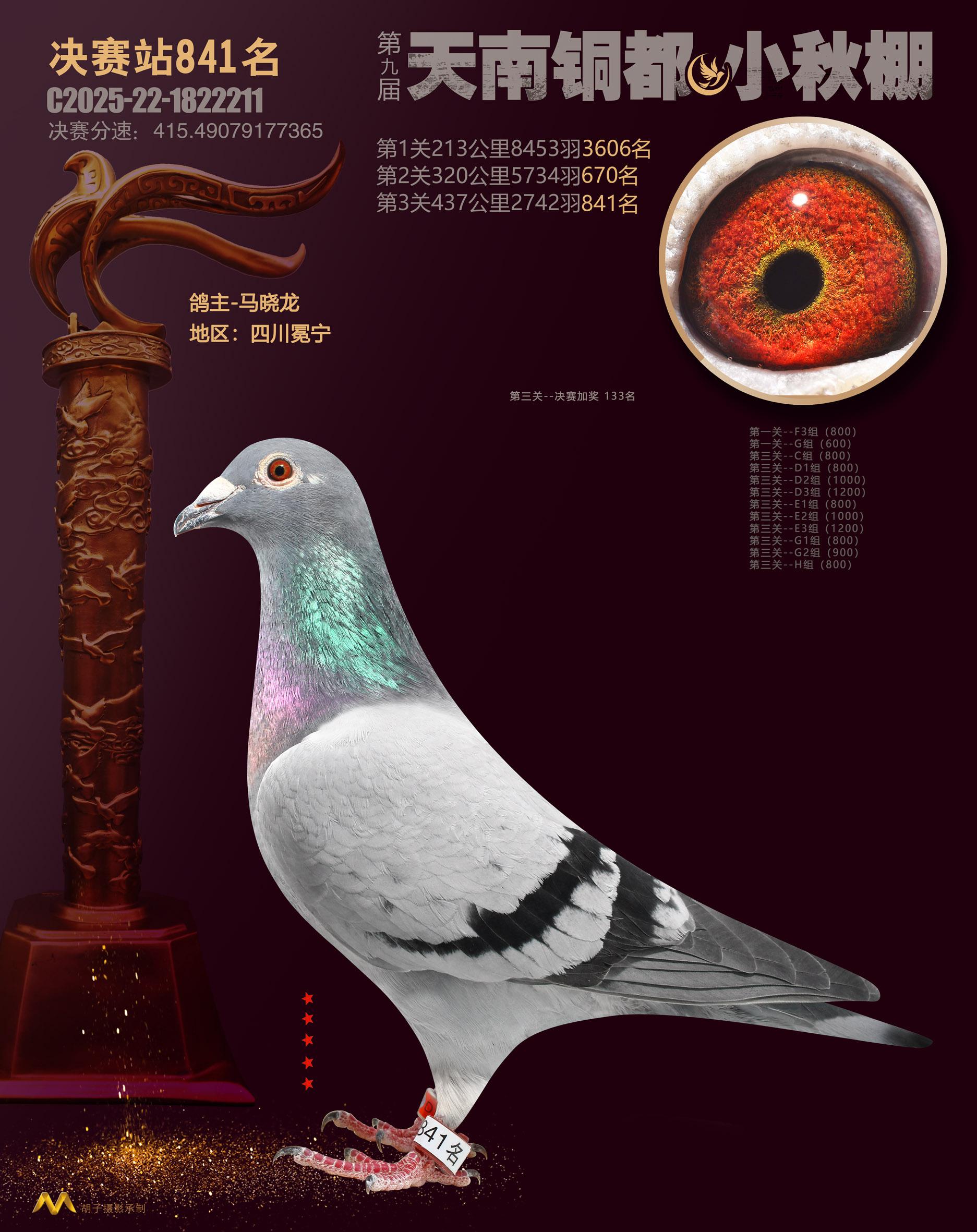 位置:云南天南铜都小棚(小秋棚)2025获奖鸽展示\决赛站841名