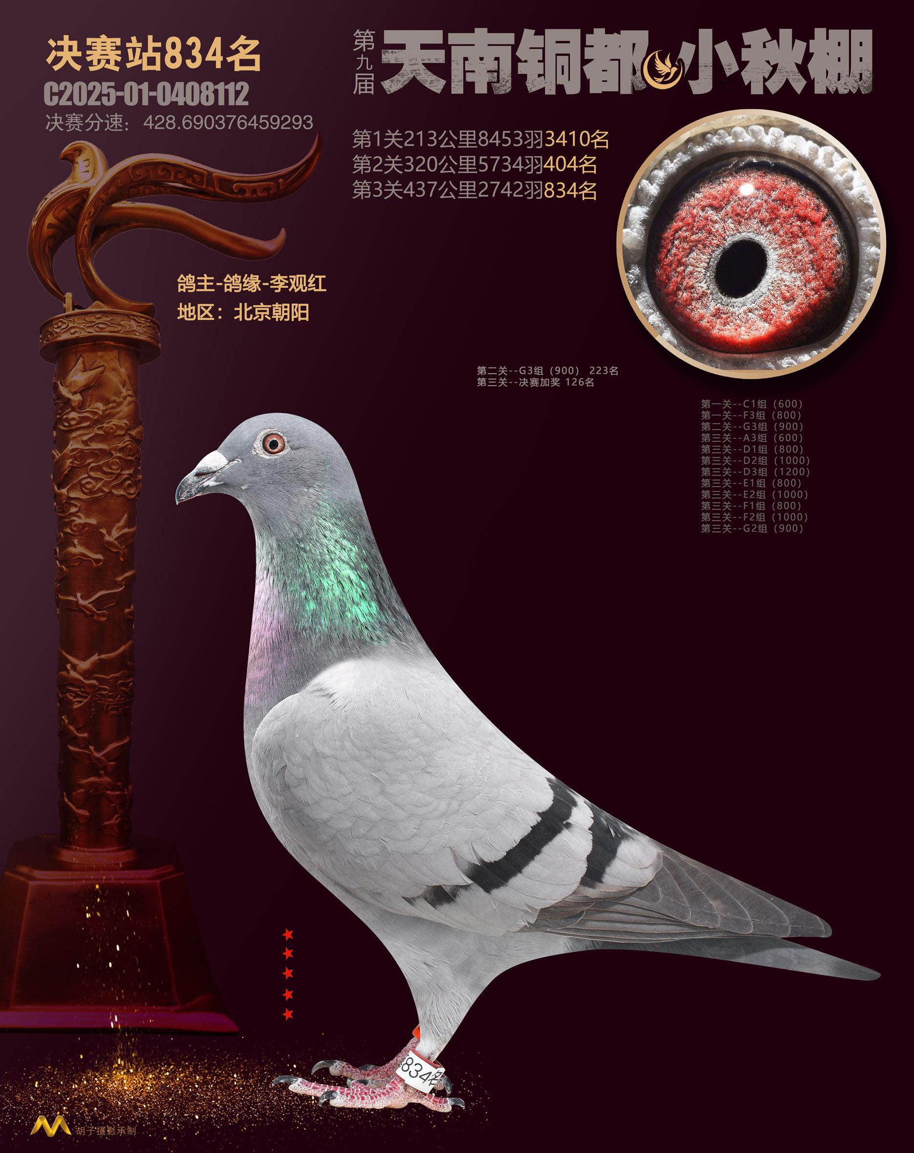 位置:云南天南铜都小棚(小秋棚)2025获奖鸽展示\决赛站834名