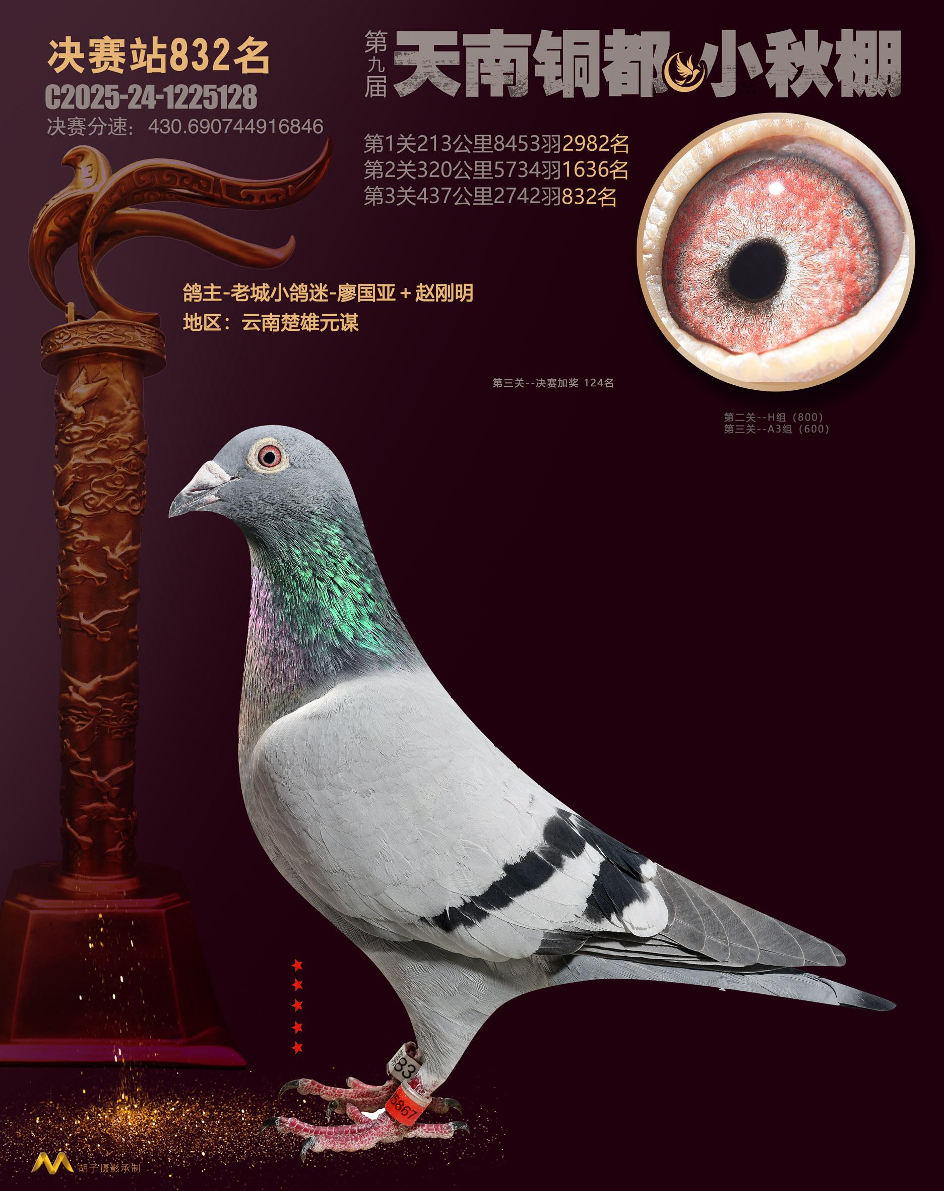 位置:云南天南铜都小棚(小秋棚)2025获奖鸽展示\决赛站832名