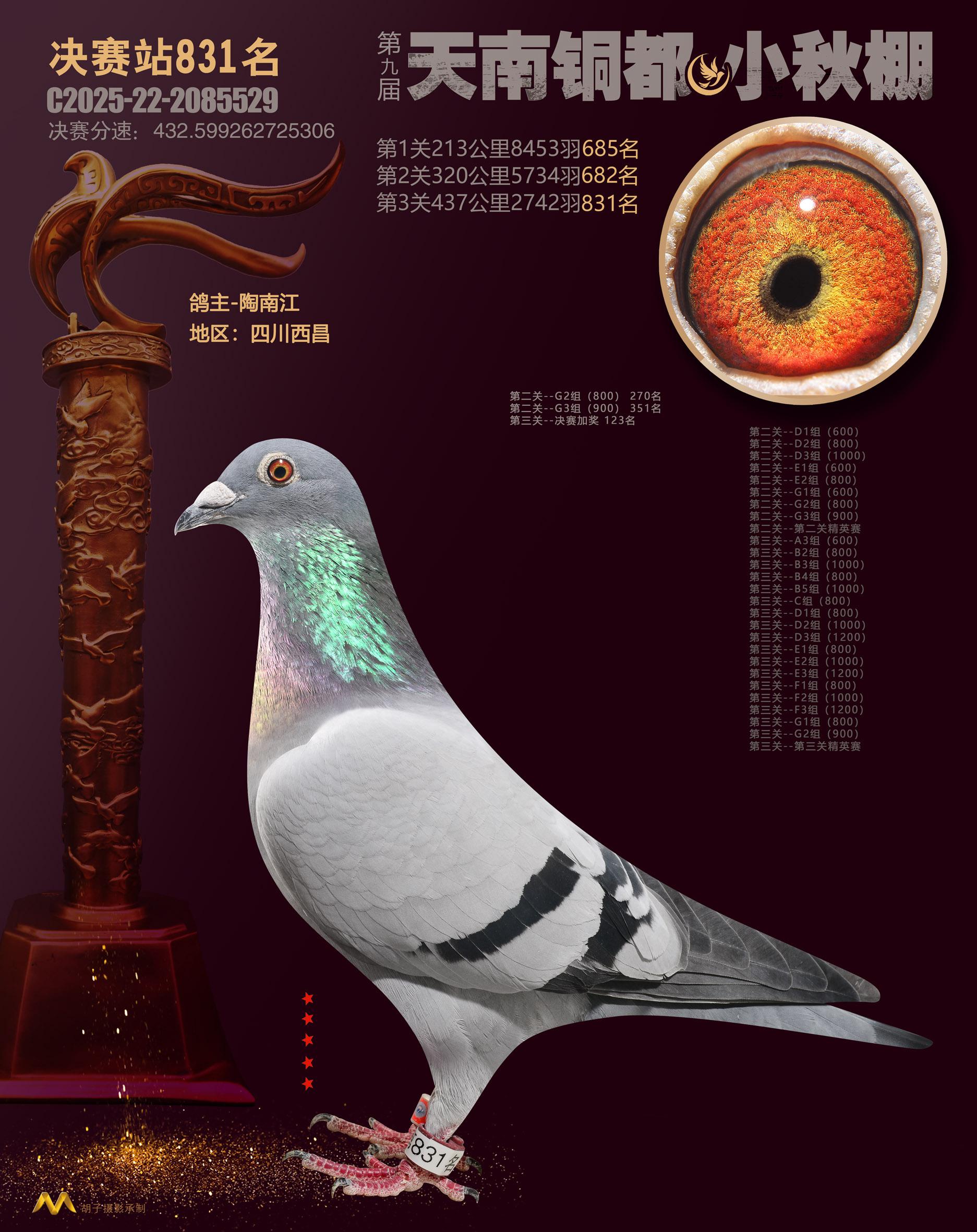 位置:云南天南铜都小棚(小秋棚)2025获奖鸽展示\决赛站831名