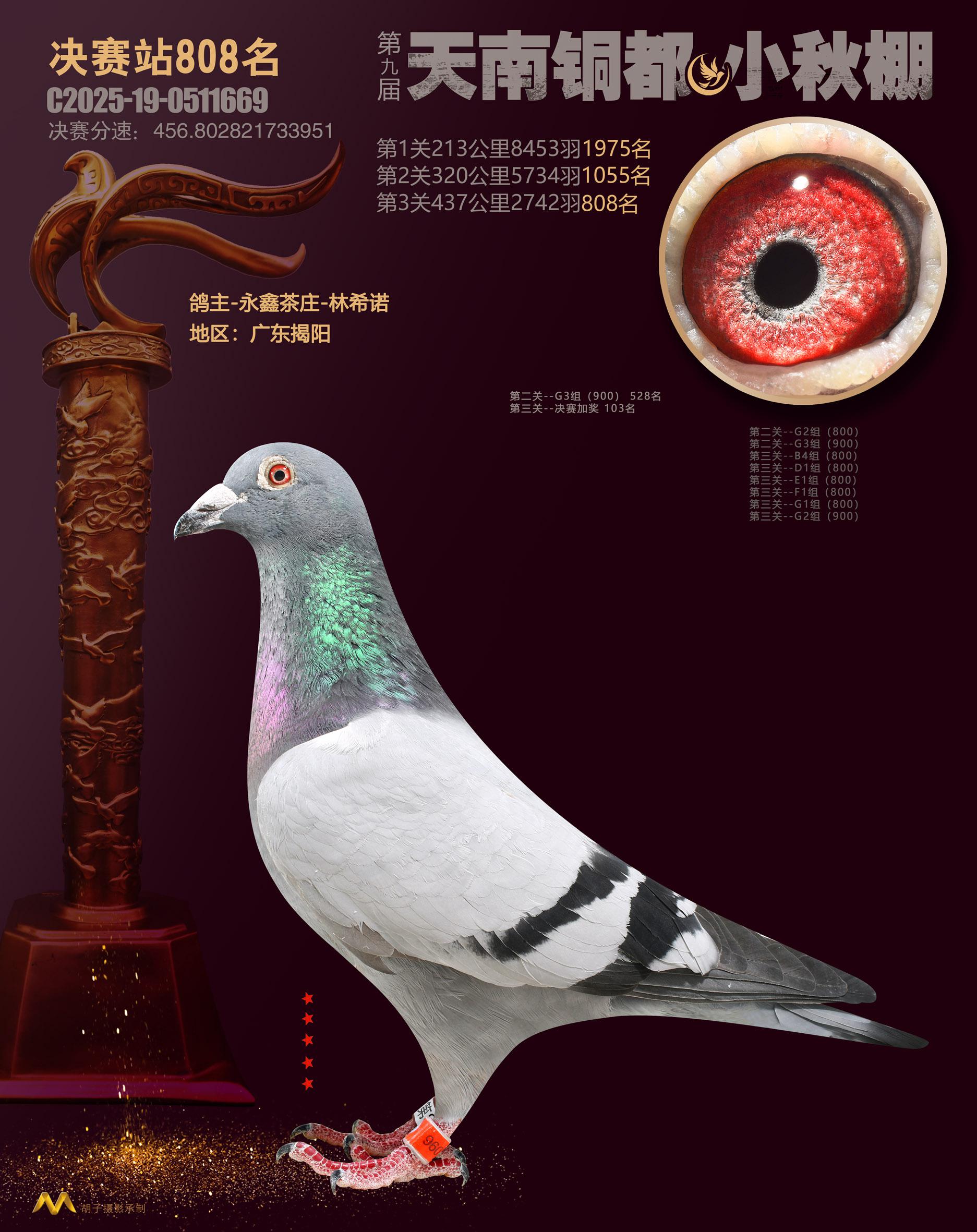 位置:云南天南铜都小棚(小秋棚)2025获奖鸽展示\决赛站808名