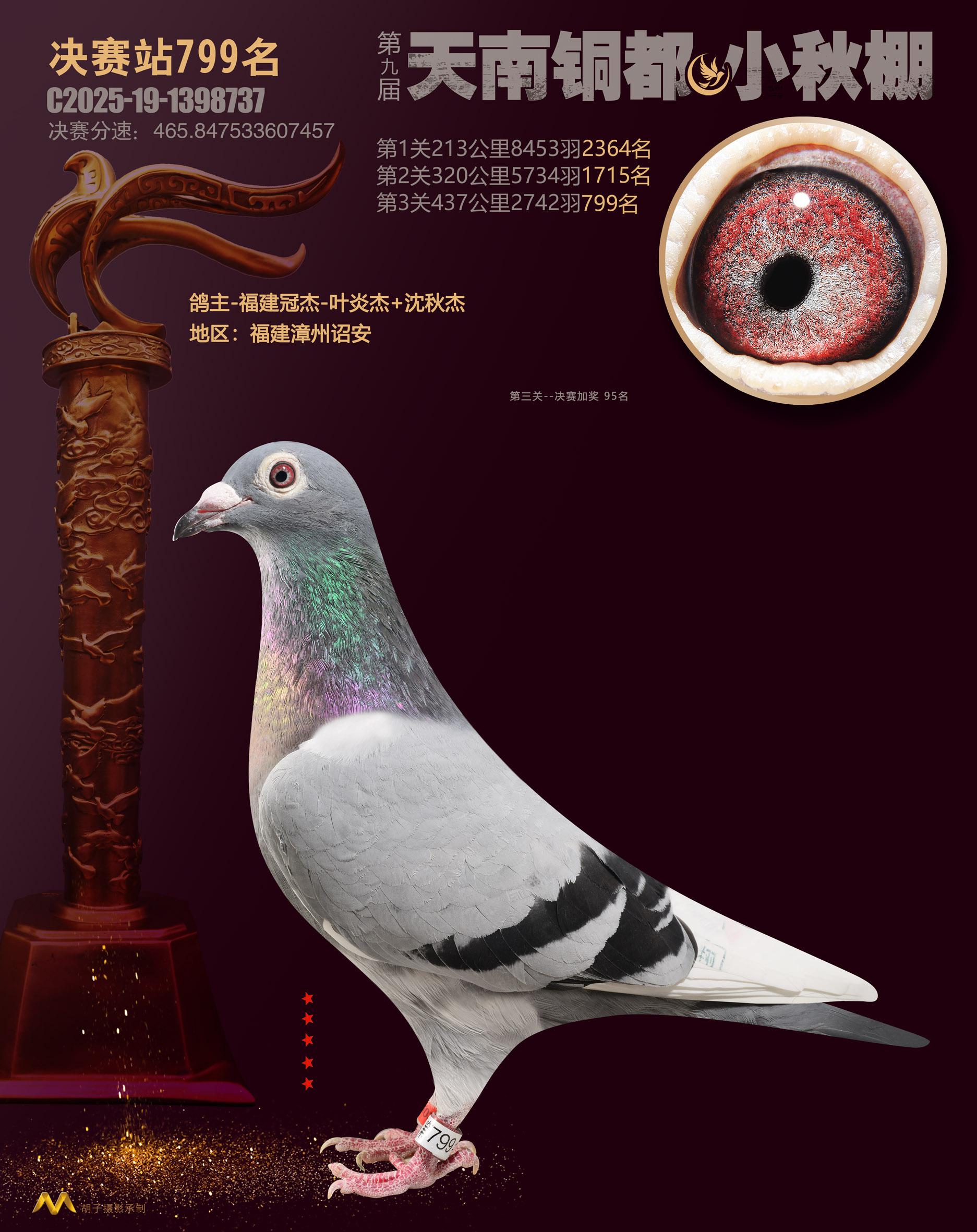 位置:云南天南铜都小棚(小秋棚)2025获奖鸽展示\决赛站799名