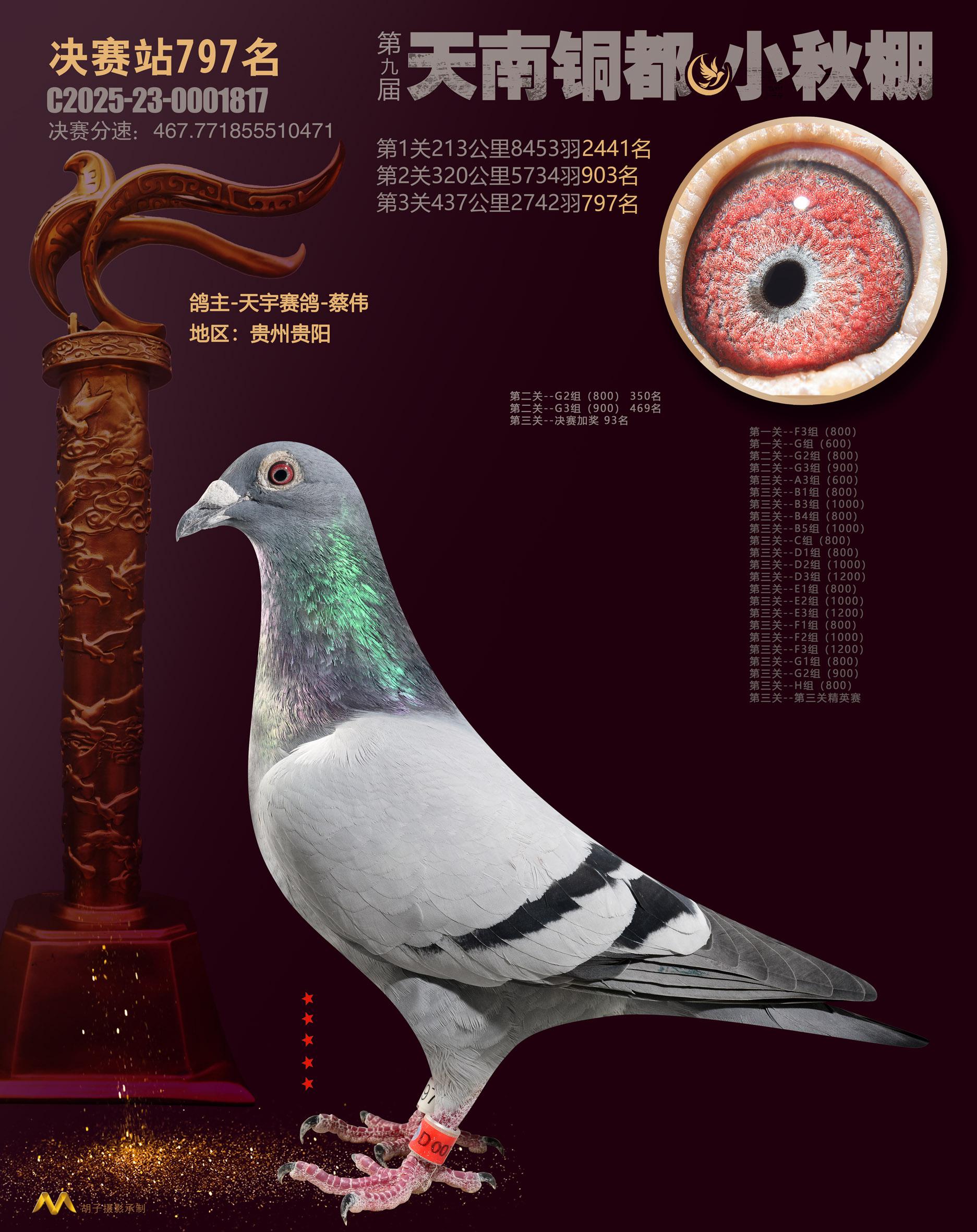 位置:云南天南铜都小棚(小秋棚)2025获奖鸽展示\决赛站797名