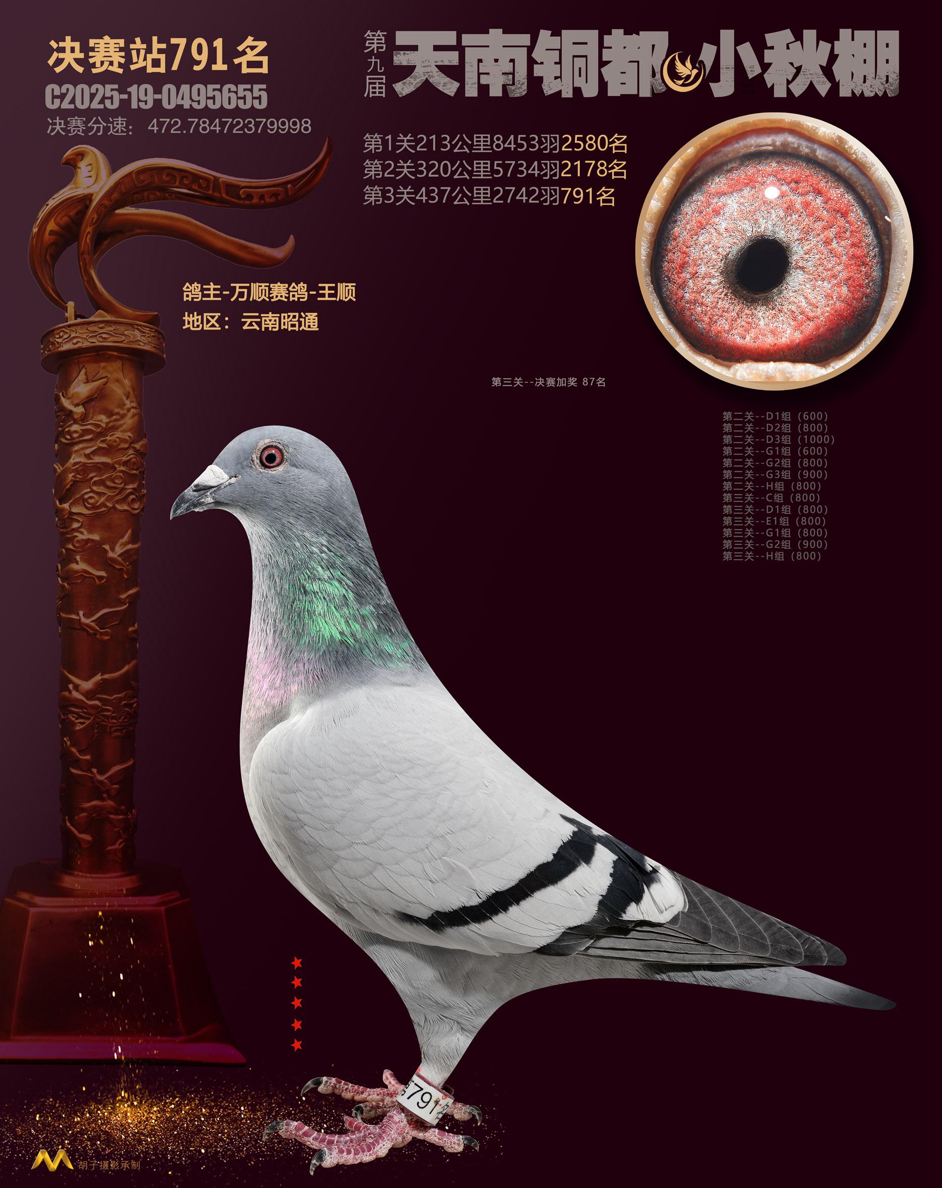 位置:云南天南铜都小棚(小秋棚)2025获奖鸽展示\决赛站791名