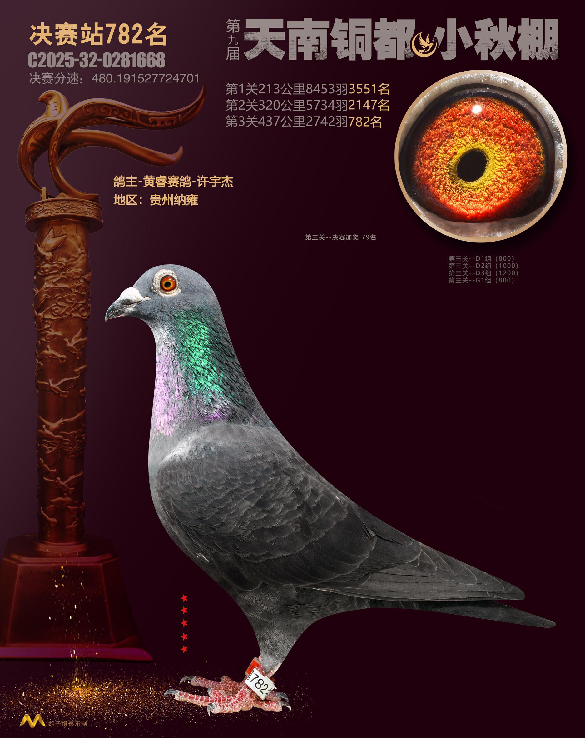 位置:云南天南铜都小棚(小秋棚)2025获奖鸽展示\决赛站782名
