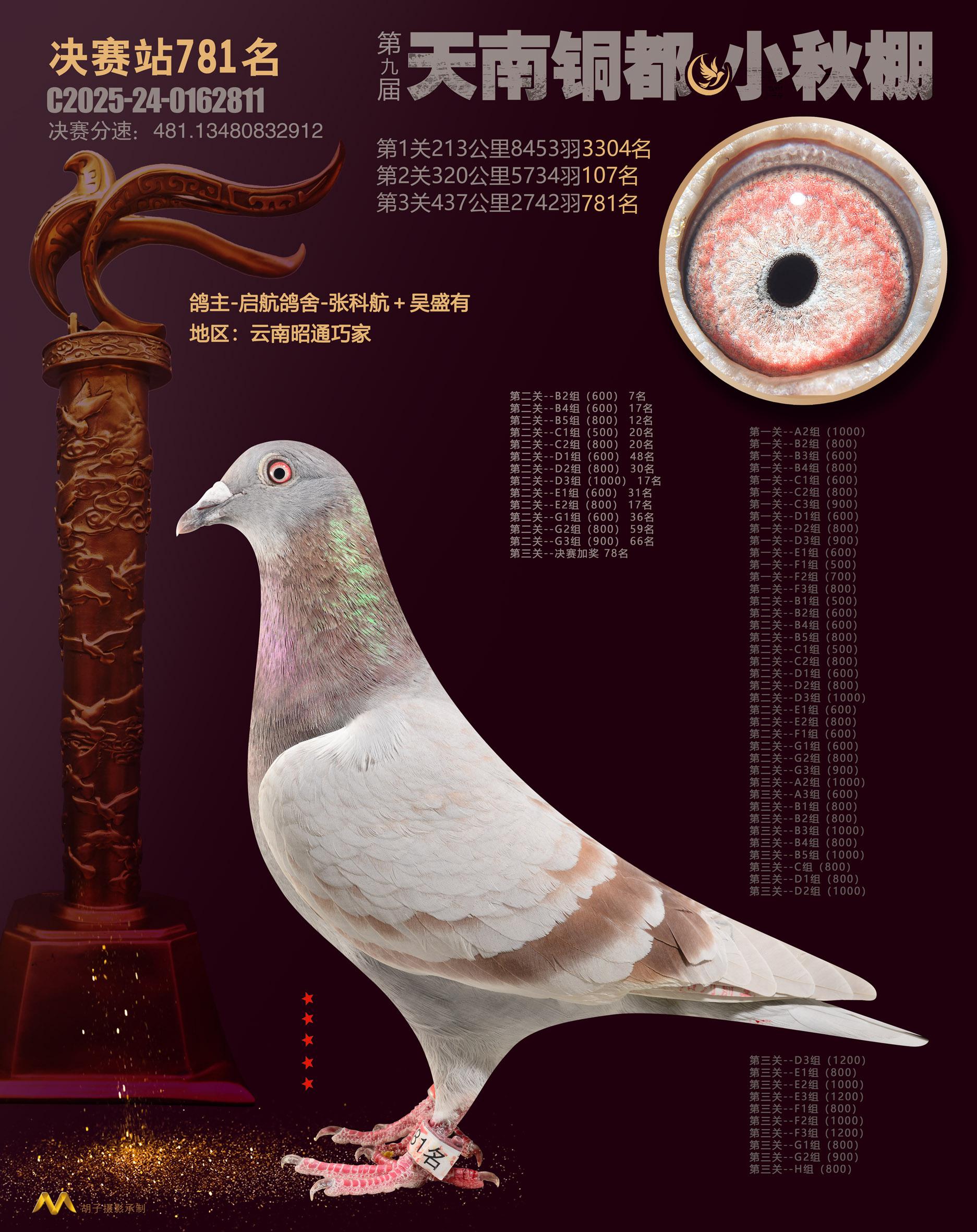 位置:云南天南铜都小棚(小秋棚)2025获奖鸽展示\决赛站781名