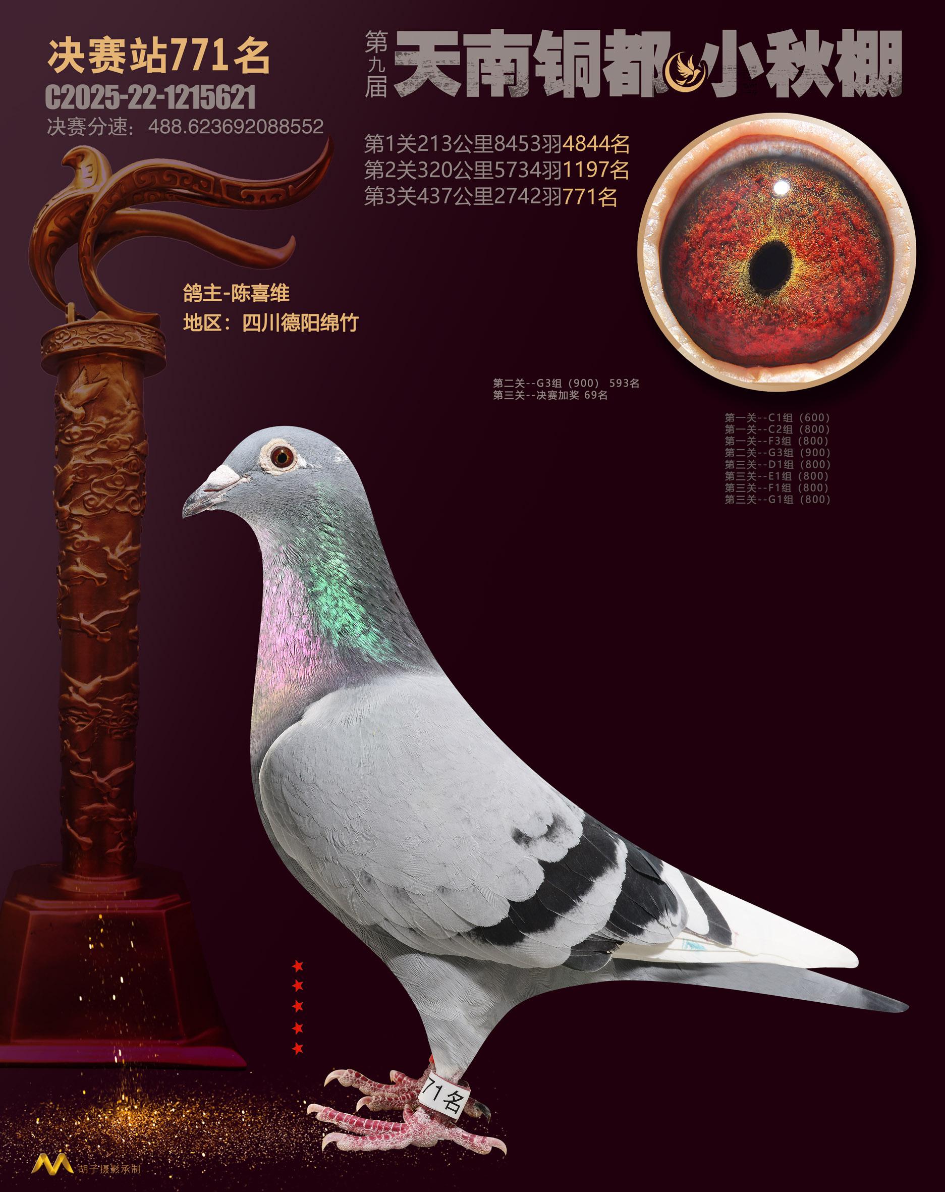 位置:云南天南铜都小棚(小秋棚)2025获奖鸽展示\决赛站771名