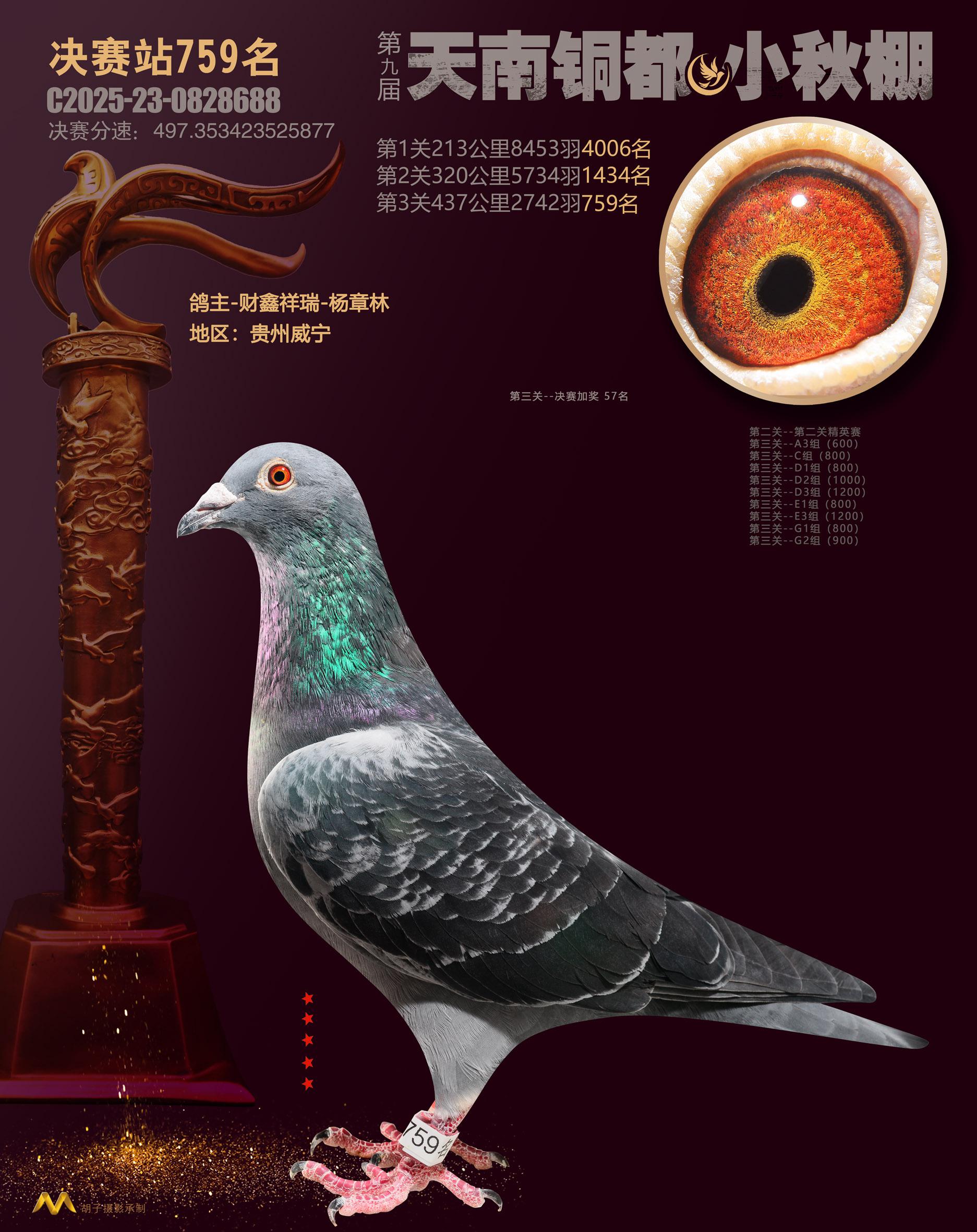 位置:云南天南铜都小棚(小秋棚)2025获奖鸽展示\决赛站759名