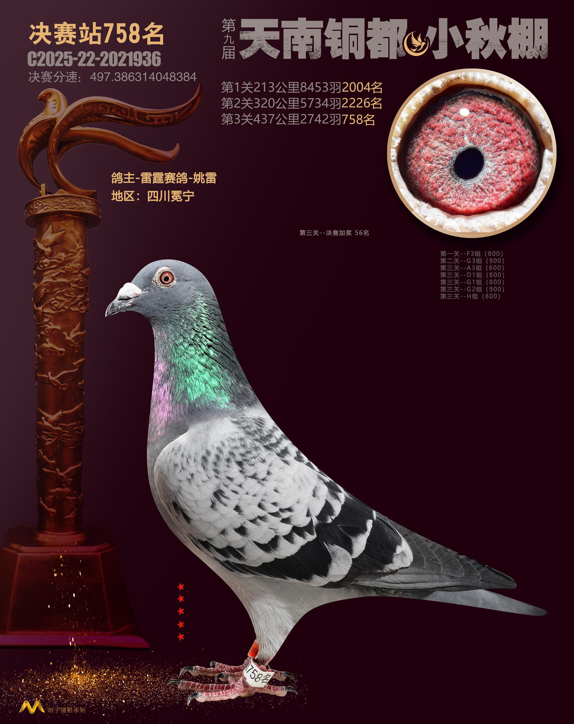 位置:云南天南铜都小棚(小秋棚)2025获奖鸽展示\决赛站758名