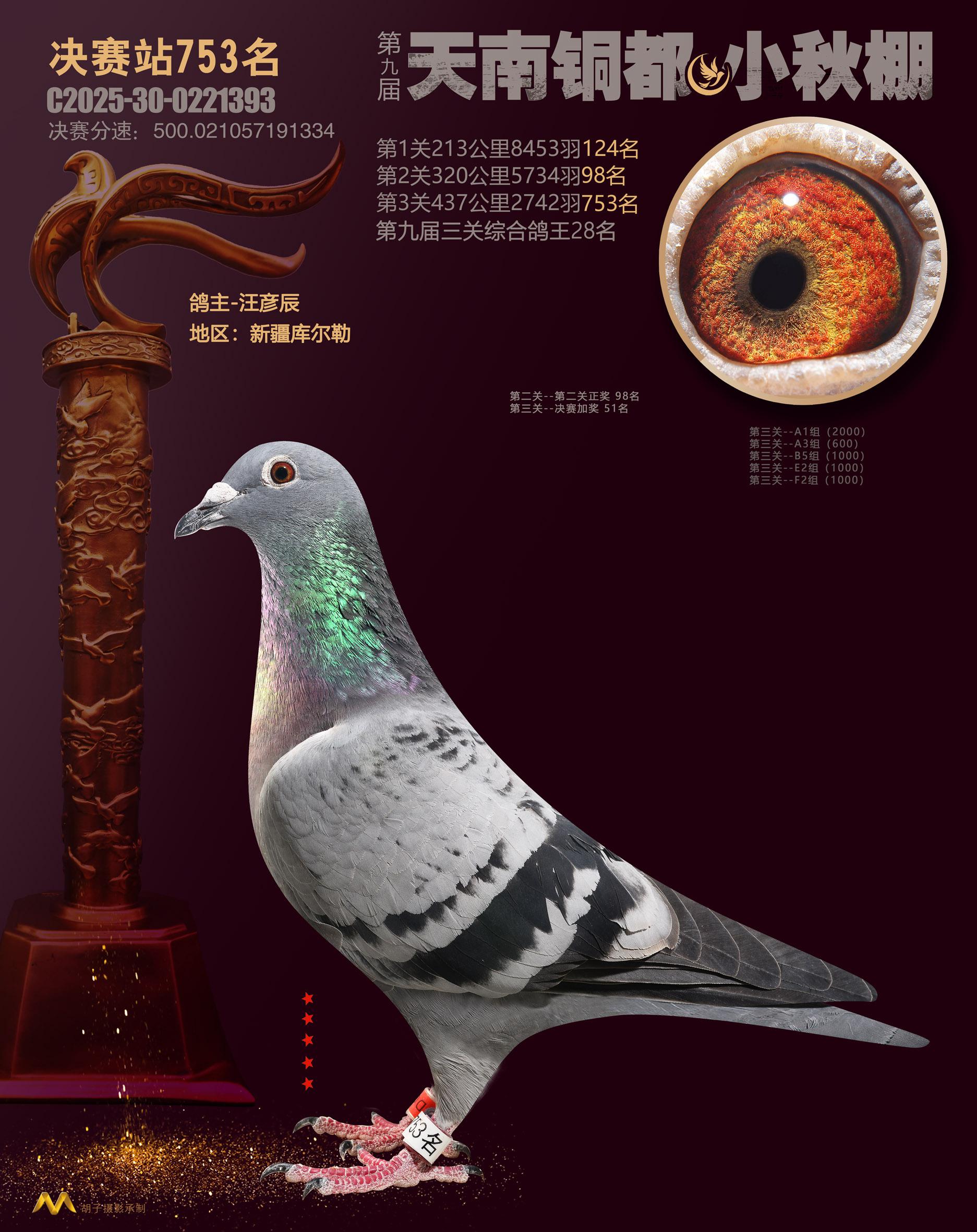 位置:云南天南铜都小棚(小秋棚)2025获奖鸽展示\决赛站753名