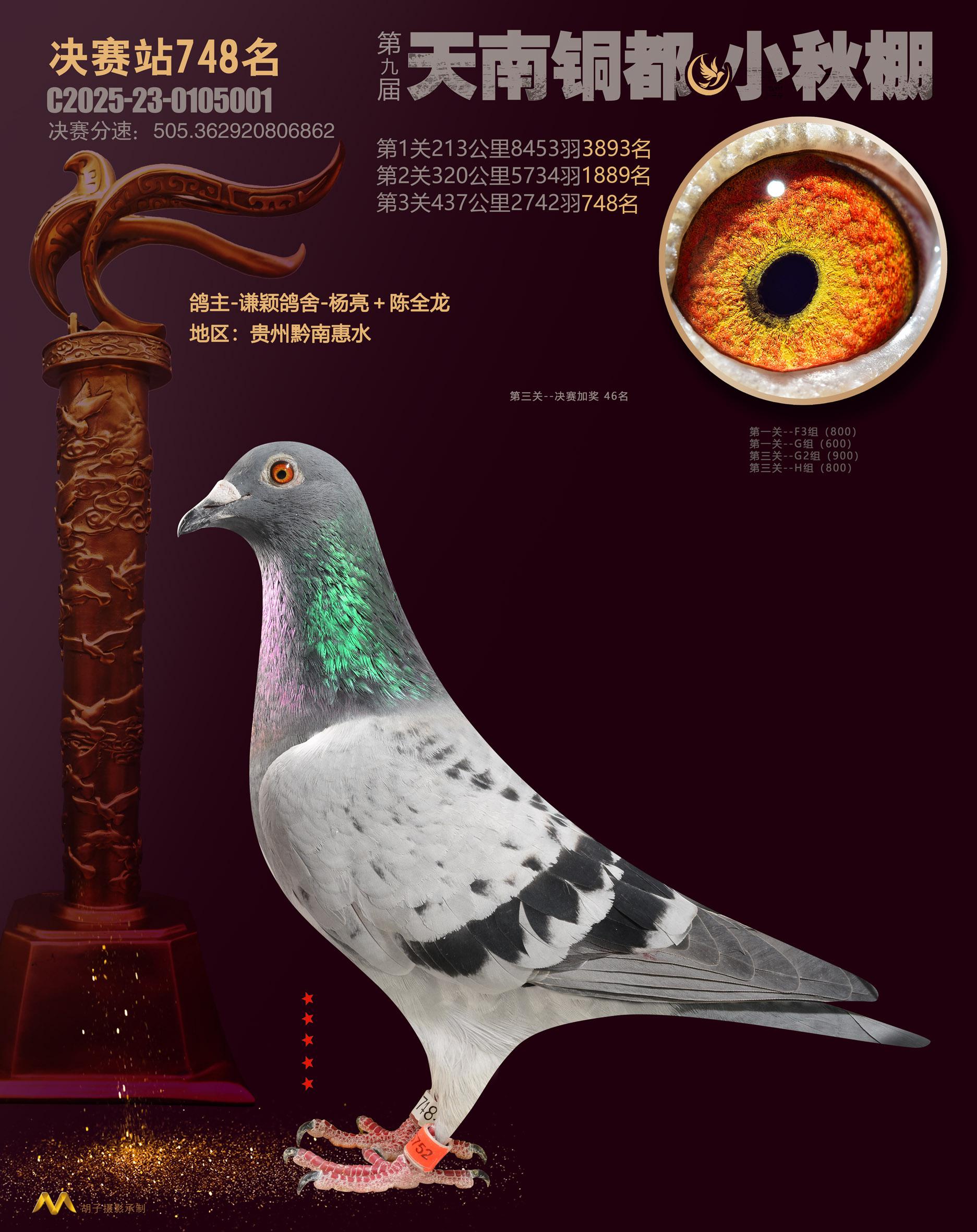 位置:云南天南铜都小棚(小秋棚)2025获奖鸽展示\决赛站748名