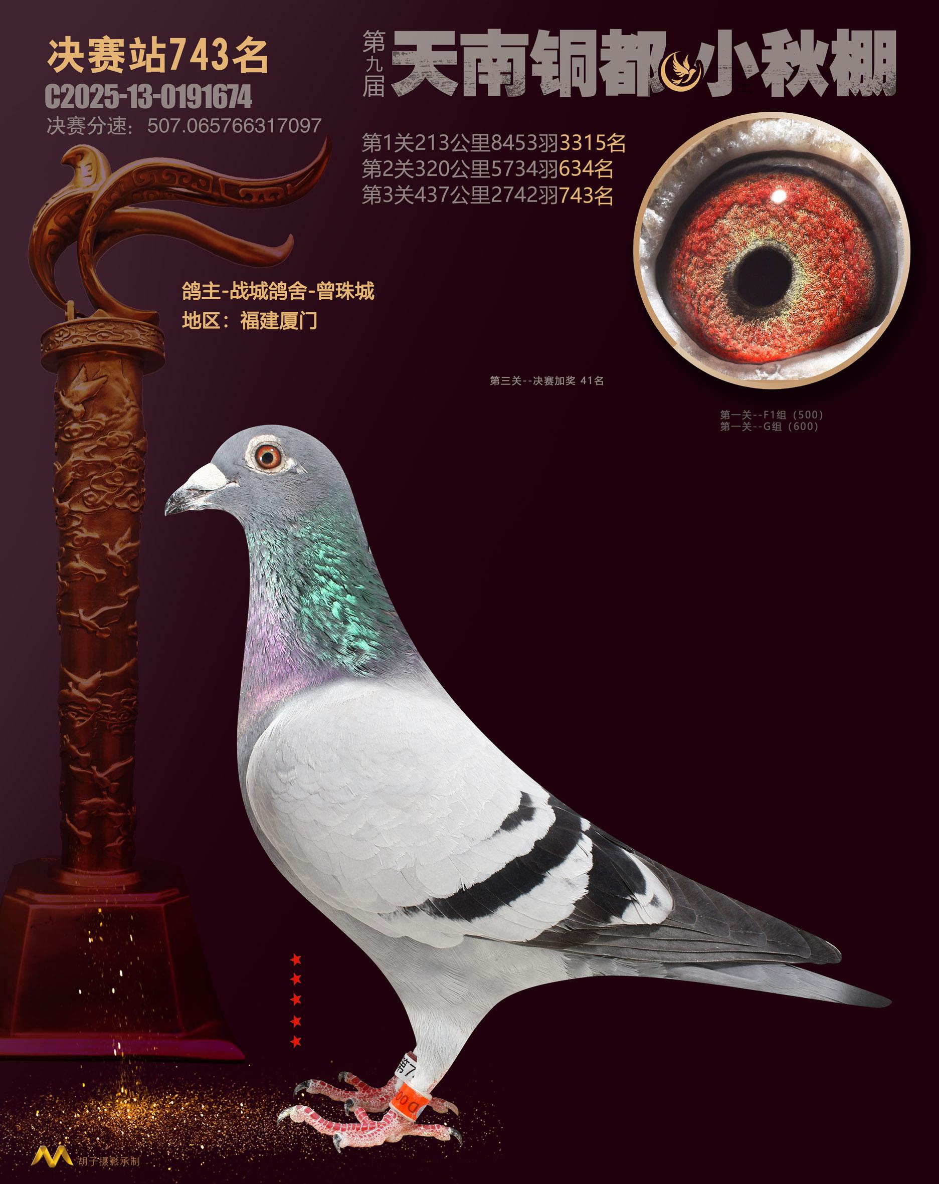 位置:云南天南铜都小棚(小秋棚)2025获奖鸽展示\决赛站743名