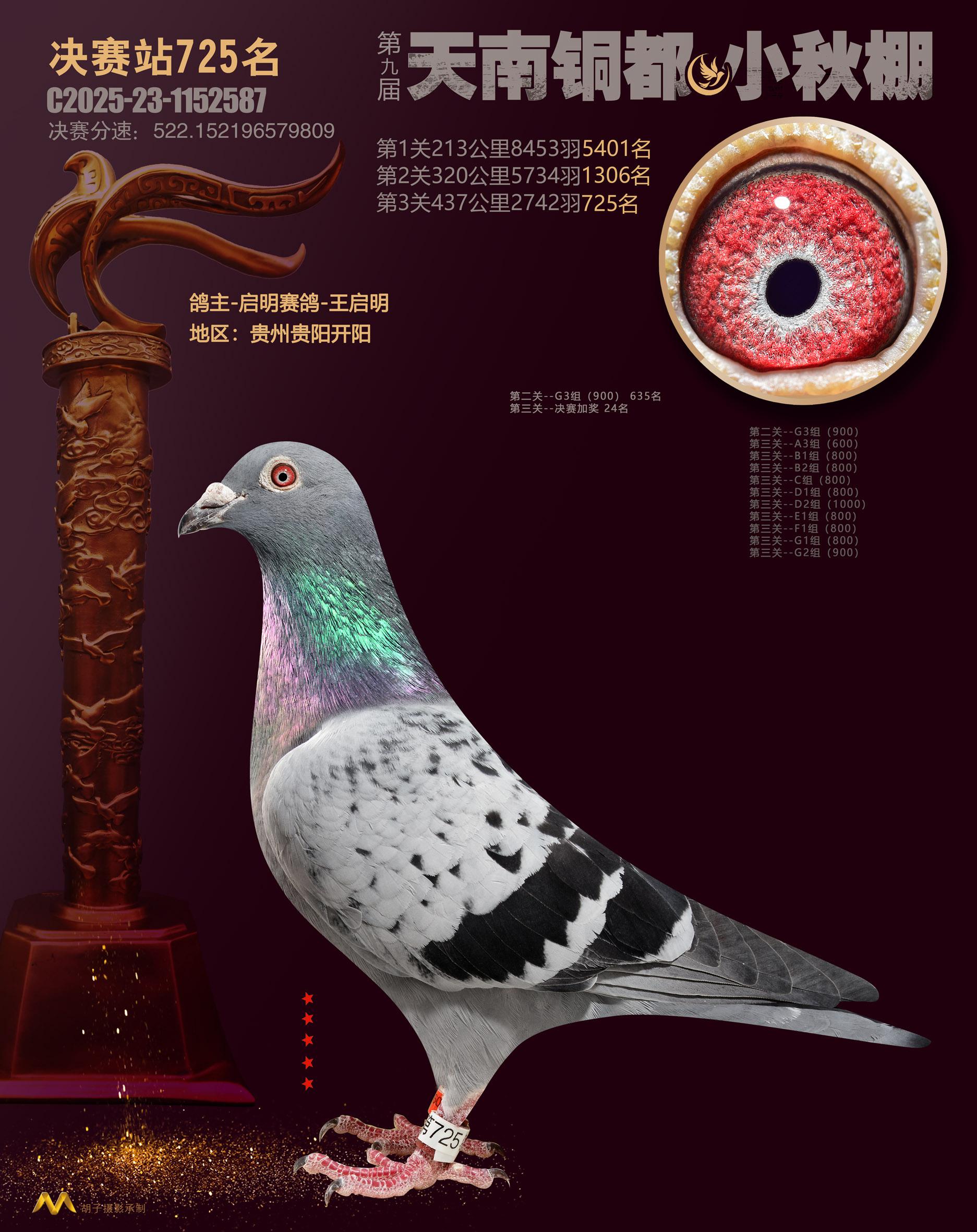 位置:云南天南铜都小棚(小秋棚)2025获奖鸽展示\决赛站725名