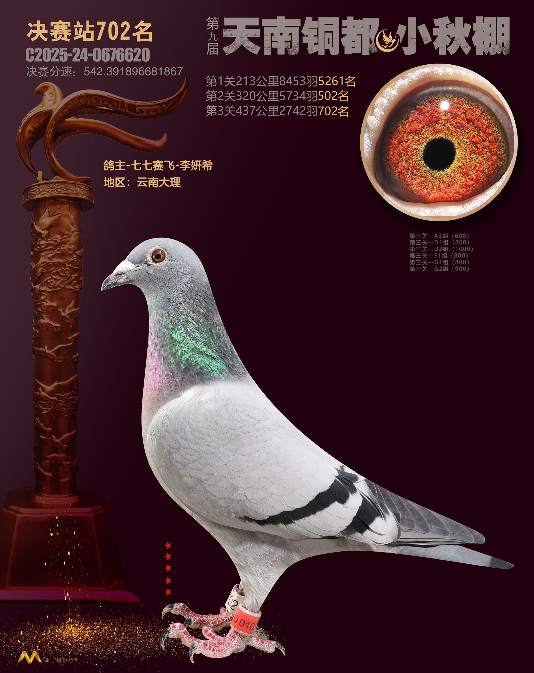 位置:云南天南铜都小棚(小秋棚)2025获奖鸽展示\决赛站702名