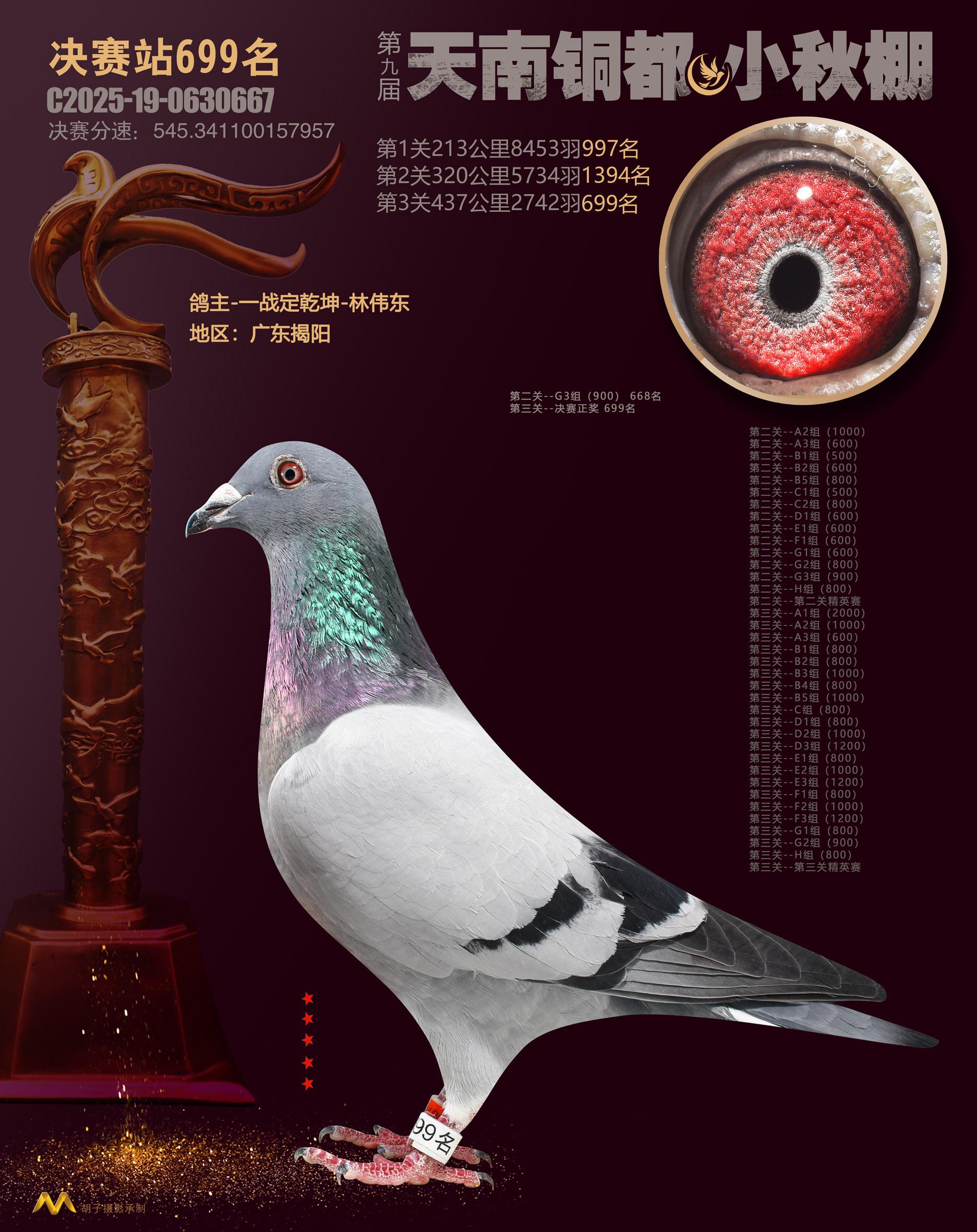 位置:云南天南铜都小棚(小秋棚)2025获奖鸽展示\决赛站699名