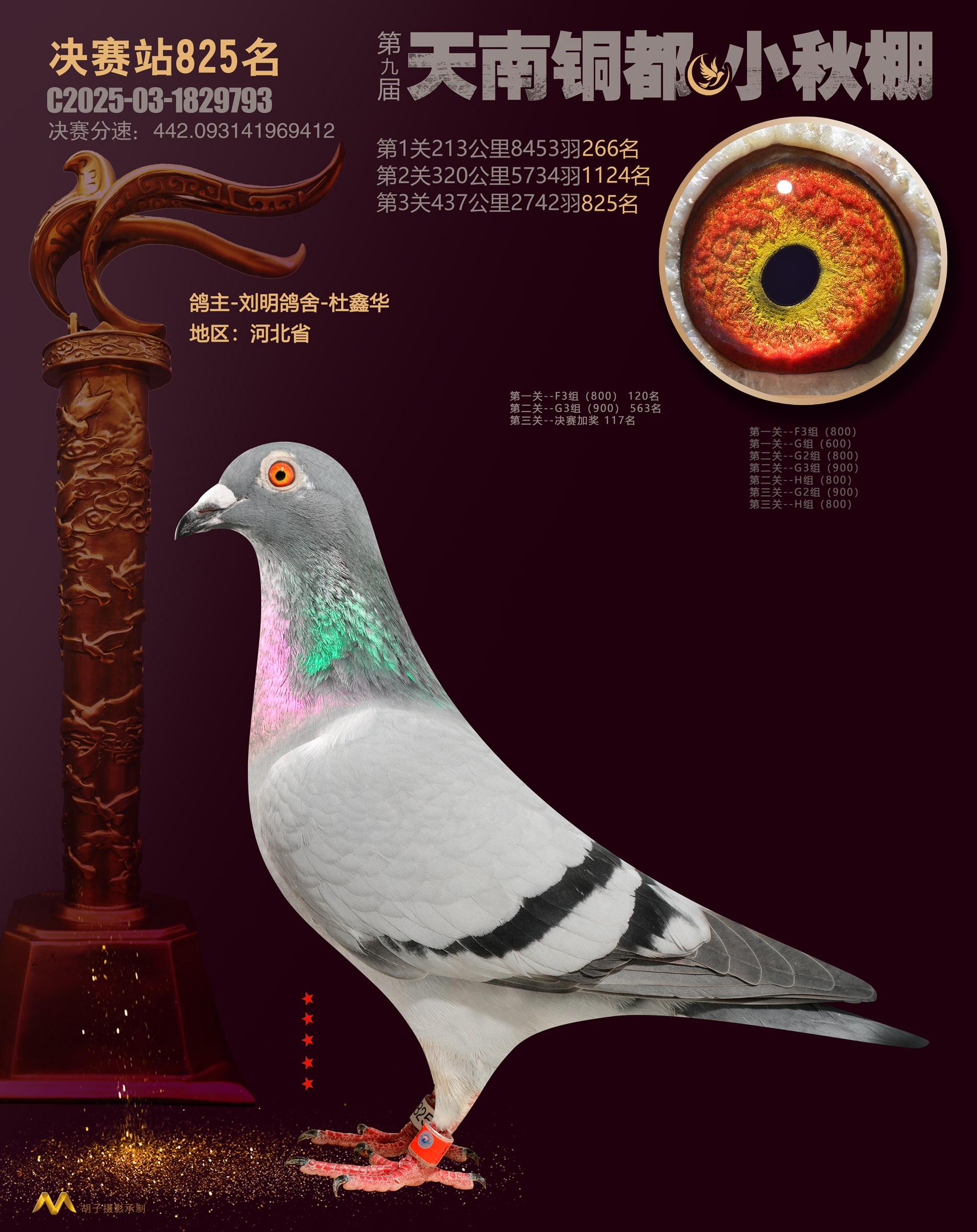 位置:云南天南铜都小棚(小秋棚)2025获奖鸽展示\决赛站825名