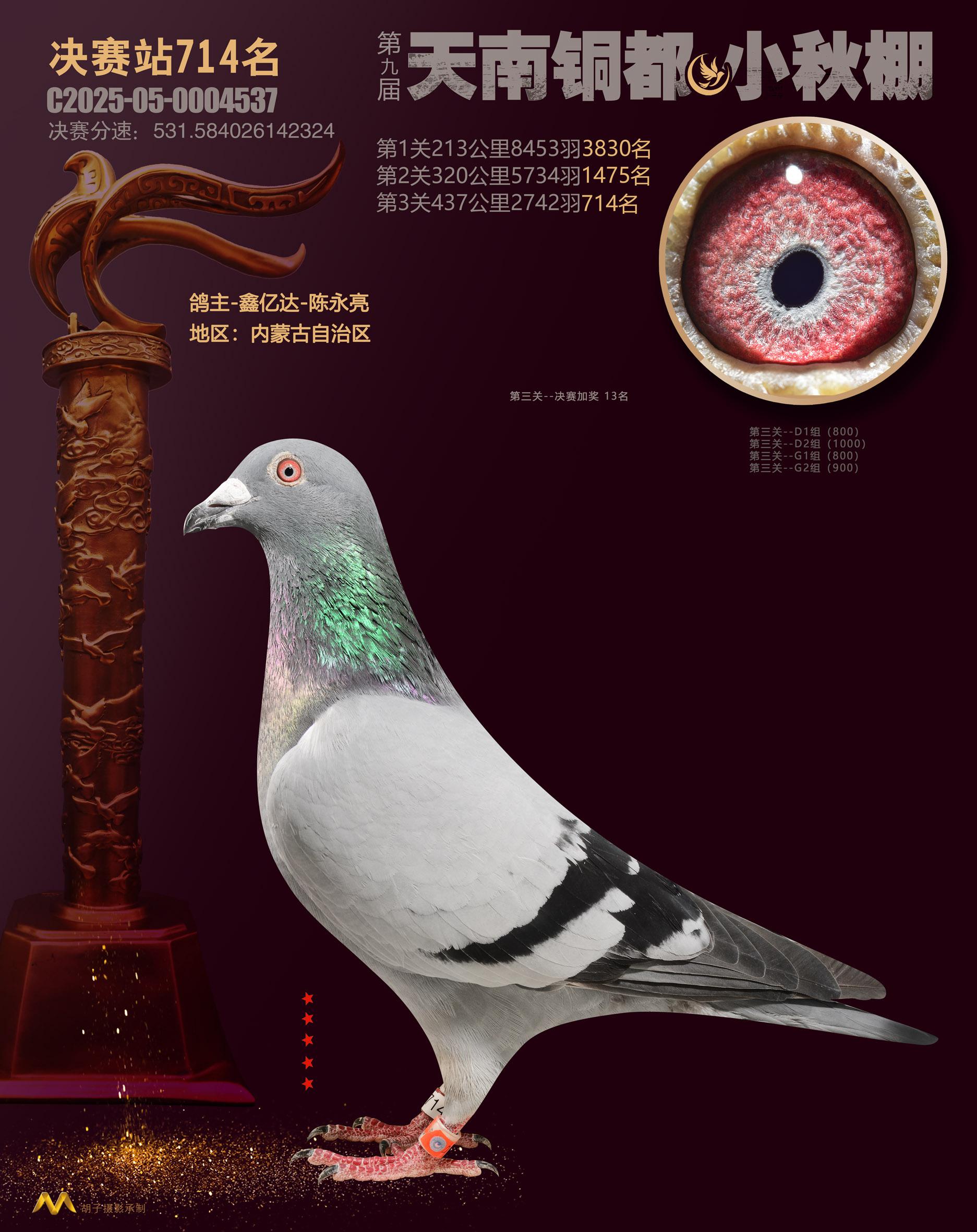 位置:云南天南铜都小棚(小秋棚)2025获奖鸽展示\决赛站714名