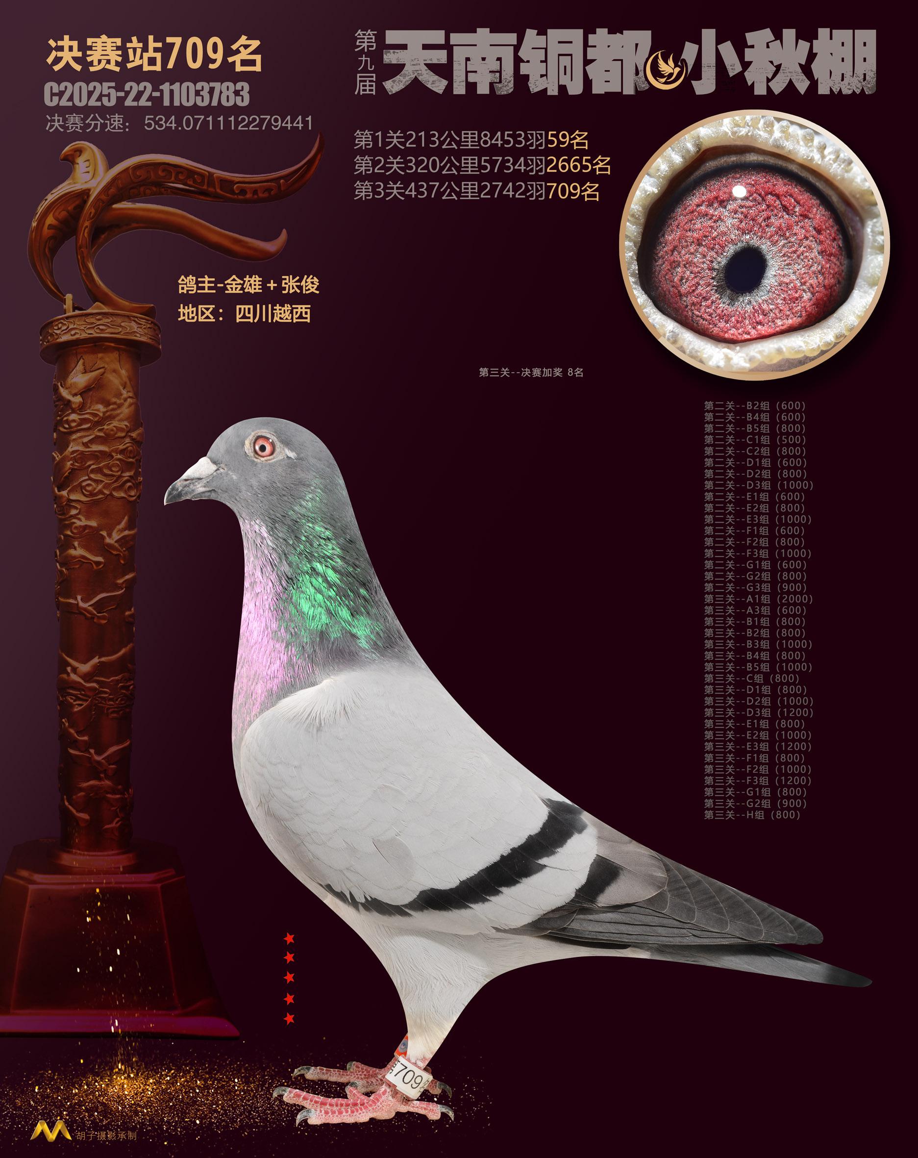 位置:云南天南铜都小棚(小秋棚)2025获奖鸽展示\决赛站709名