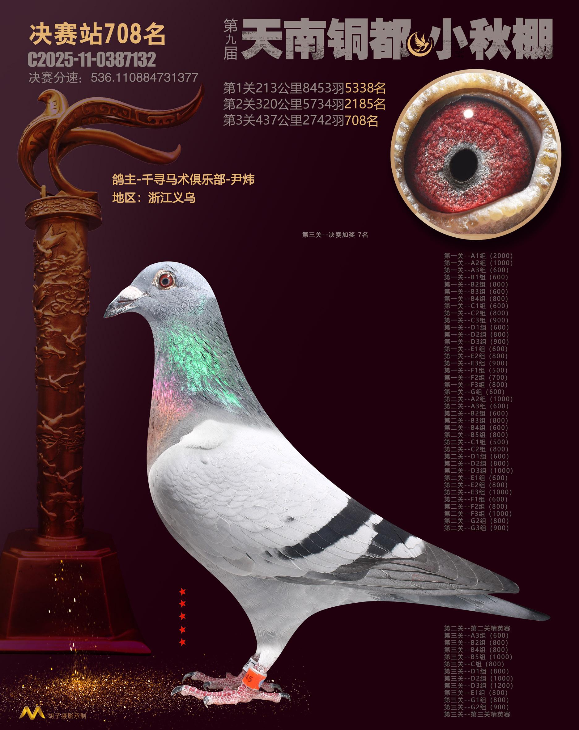 位置:云南天南铜都小棚(小秋棚)2025获奖鸽展示\决赛站708名