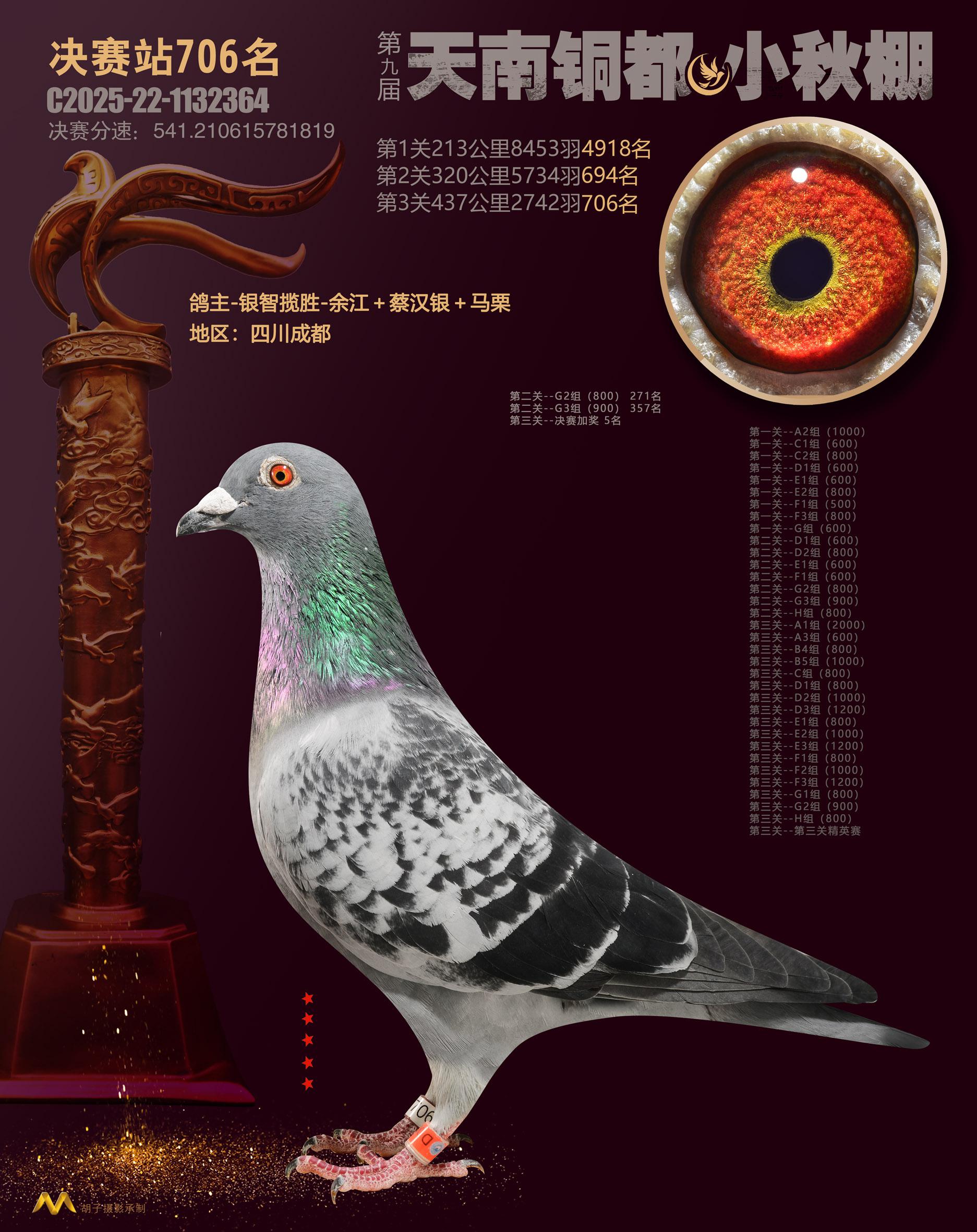 位置:云南天南铜都小棚(小秋棚)2025获奖鸽展示\决赛站706名