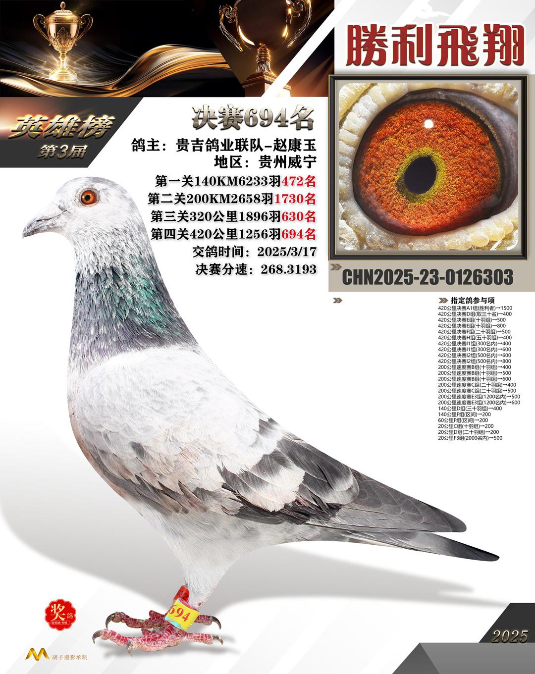 位置:云南宜良勝利飞翔公棚2025获奖鸽展示\694