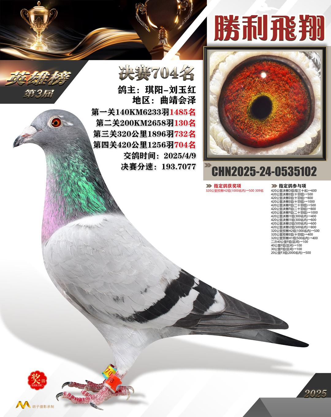 位置:云南宜良勝利飞翔公棚2025获奖鸽展示\704