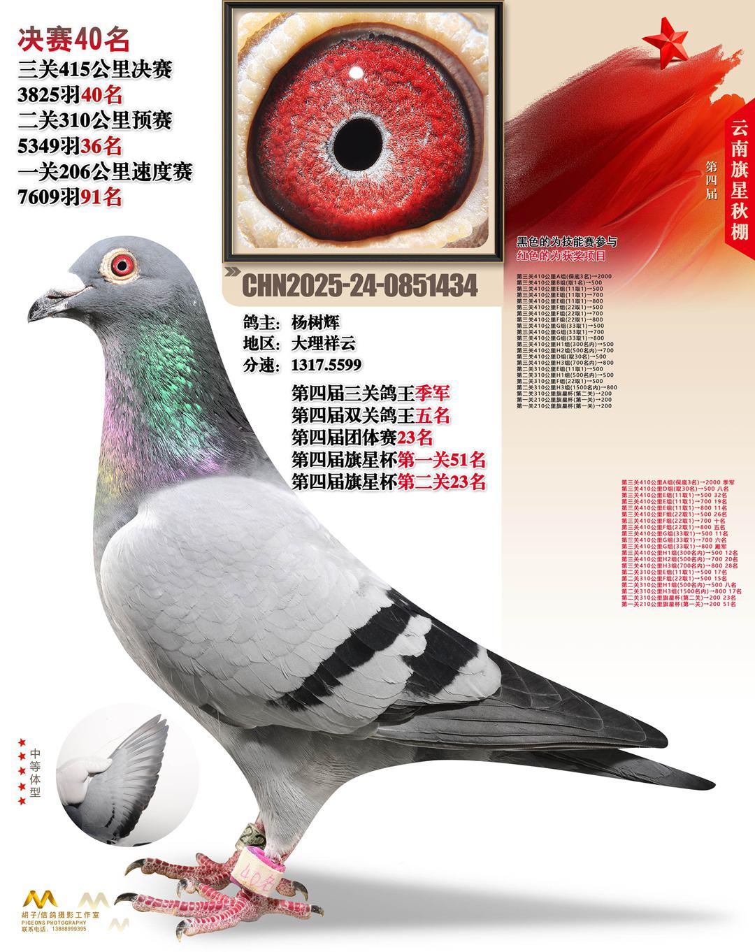 云南大理旗星赛鸽中心2025决赛40名杨树辉24-0851434大理祥云获奖鸽展示!