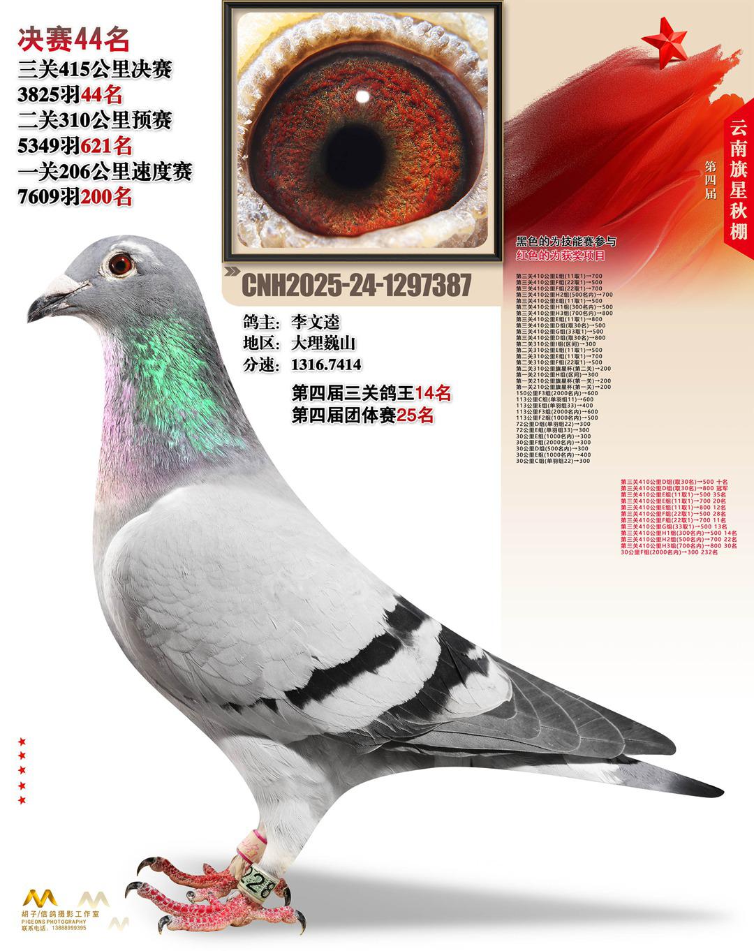 云南大理旗星赛鸽中心2025决赛44名李文逵24-1297387大理巍山获奖鸽展示!