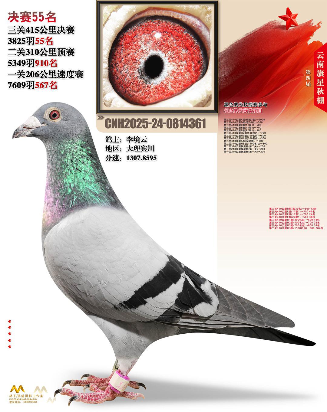 云南大理旗星赛鸽中心2025决赛55名李境云24-0814361大理宾川获奖鸽展示!