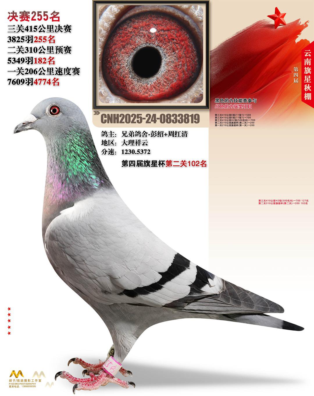云南大理旗星赛鸽中心2025决赛255名兄弟鸽舍-彭绍+周红清24-0833819大理祥云获奖鸽展示!