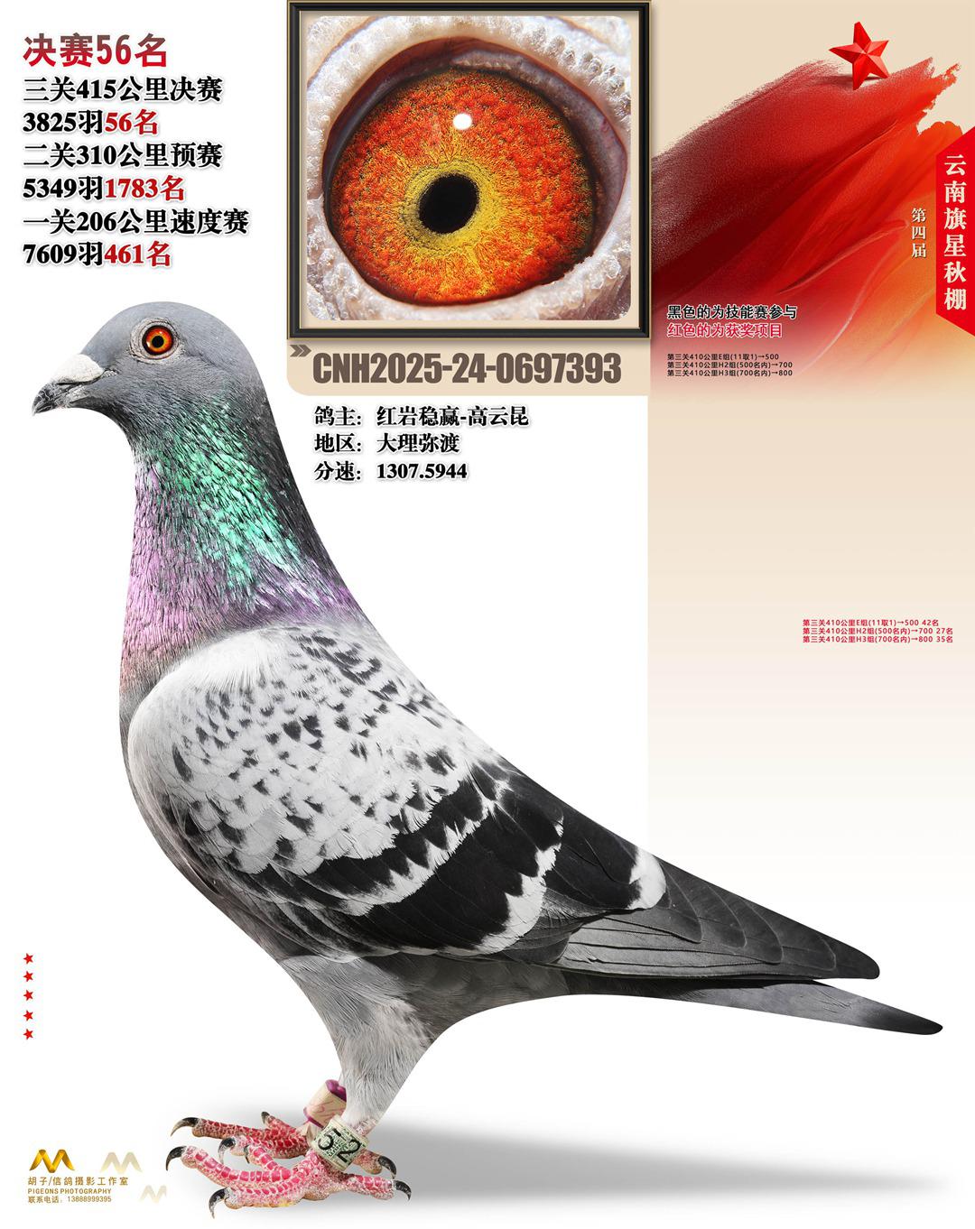 云南大理旗星赛鸽中心2025决赛56名红岩稳赢-高云昆24-0697393大理弥渡获奖鸽展示!