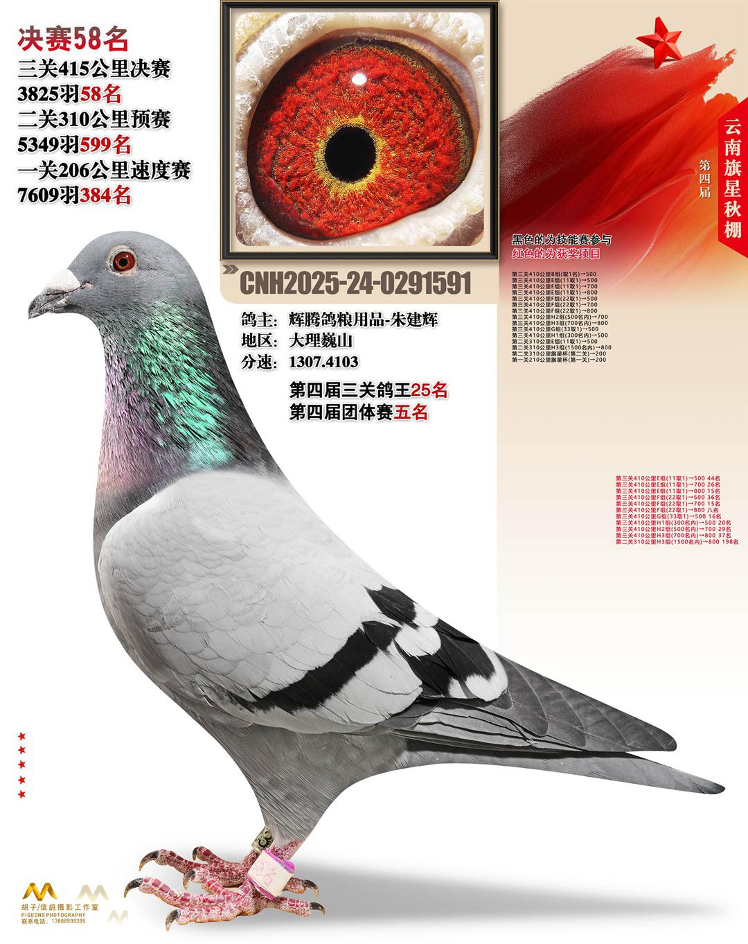 云南大理旗星赛鸽中心2025决赛58名辉腾鸽粮用品-朱建辉24-0291591大理巍山获奖鸽展示!