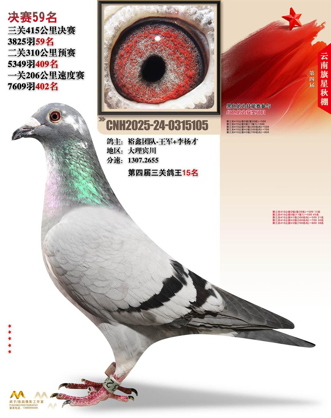云南大理旗星赛鸽中心2025决赛59名裕鑫团队-王军+李杨才24-0315105大理宾川获奖鸽展示!