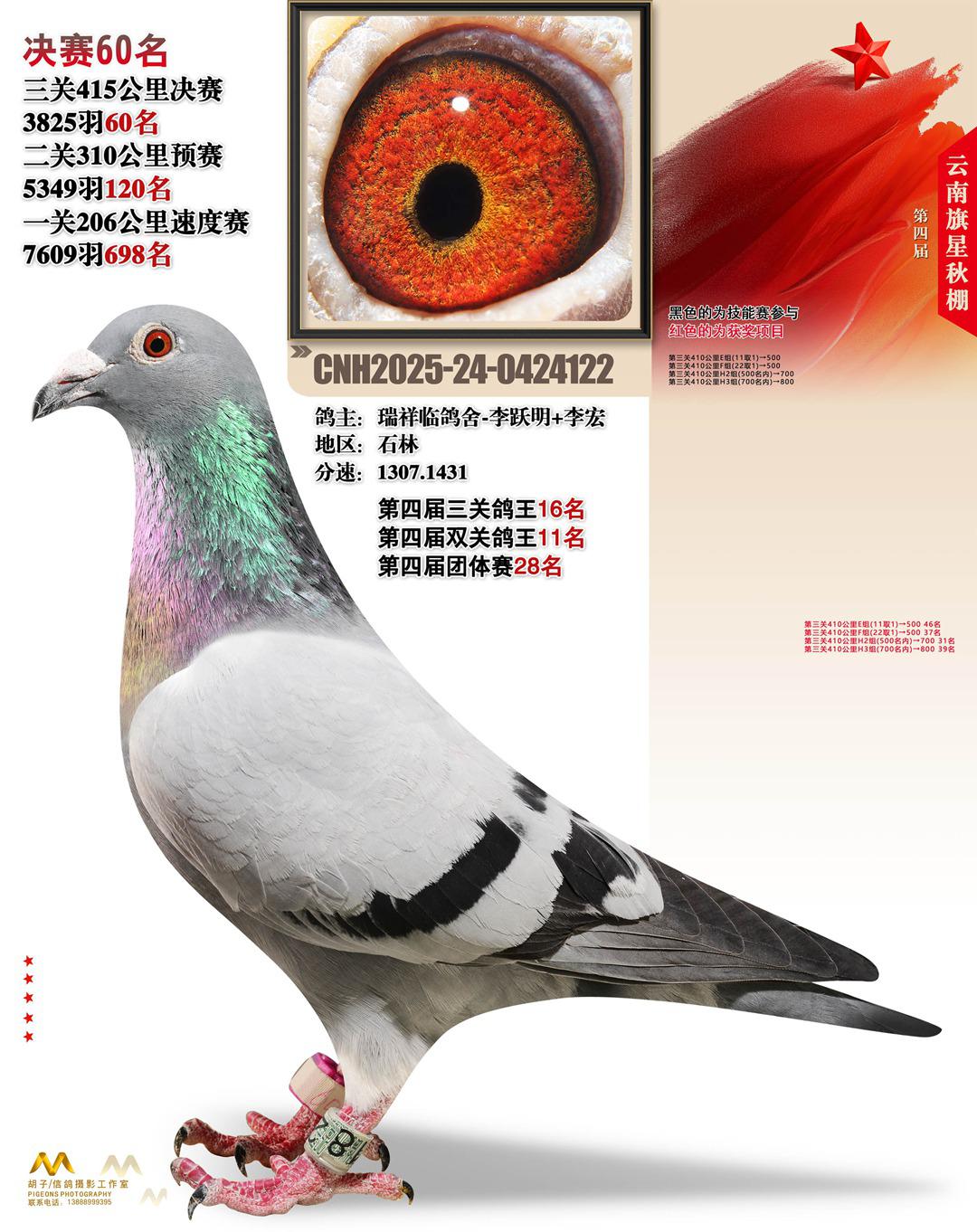 云南大理旗星赛鸽中心2025决赛60名瑞祥临鸽舍-李跃明+李宏24-0424122石林获奖鸽展示!