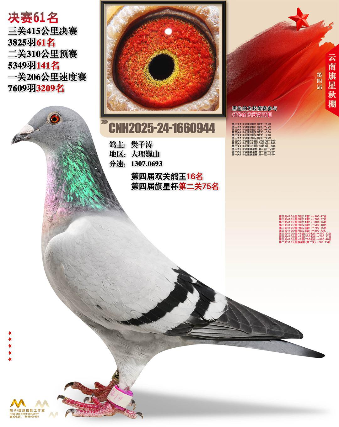 云南大理旗星赛鸽中心2025决赛61名樊子涛24-1660944大理巍山获奖鸽展示!