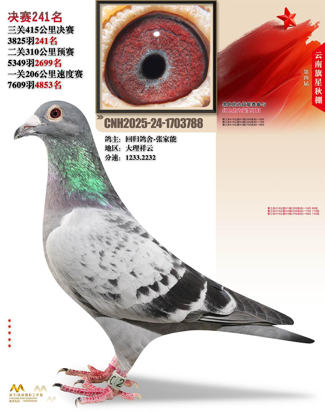 云南大理旗星赛鸽中心2025决赛241名回归鸽舍-张家能24-1703788大理祥云获奖鸽展示!