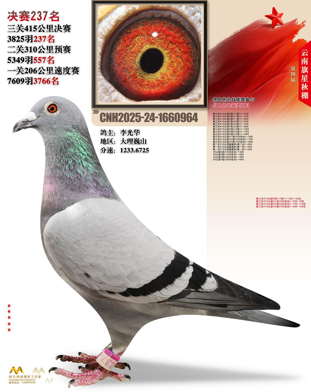 云南大理旗星赛鸽中心2025决赛237名李光华24-1660964大理巍山获奖鸽展示!