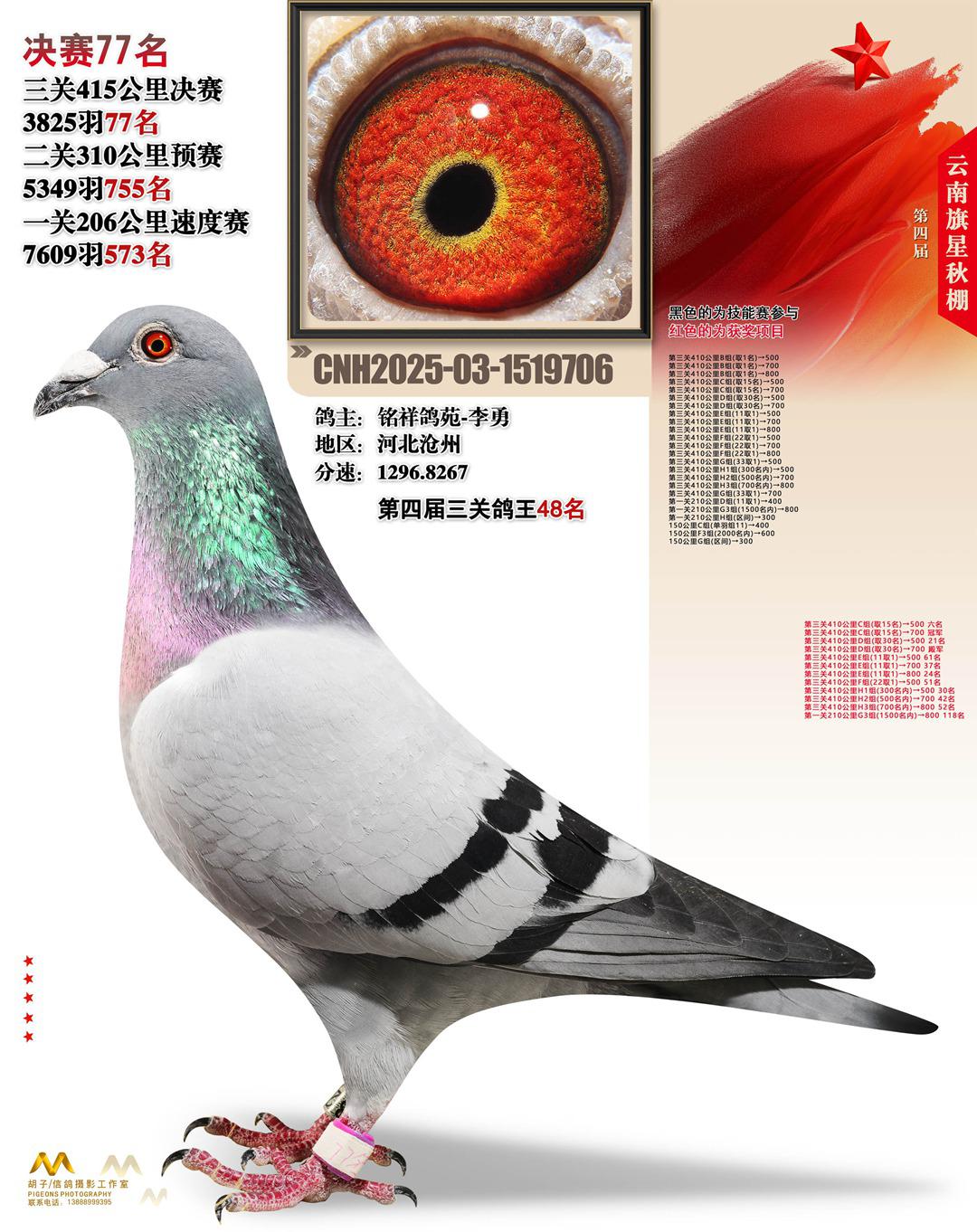 云南大理旗星赛鸽中心2025决赛77名铭祥鸽苑-李勇03-1519706河北沧州获奖鸽展示!