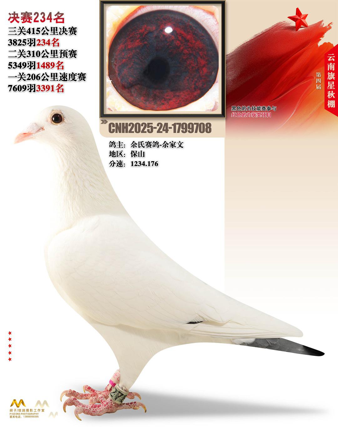 云南大理旗星赛鸽中心2025决赛234名余氏赛鸽-余家文24-1799708保山获奖鸽展示!