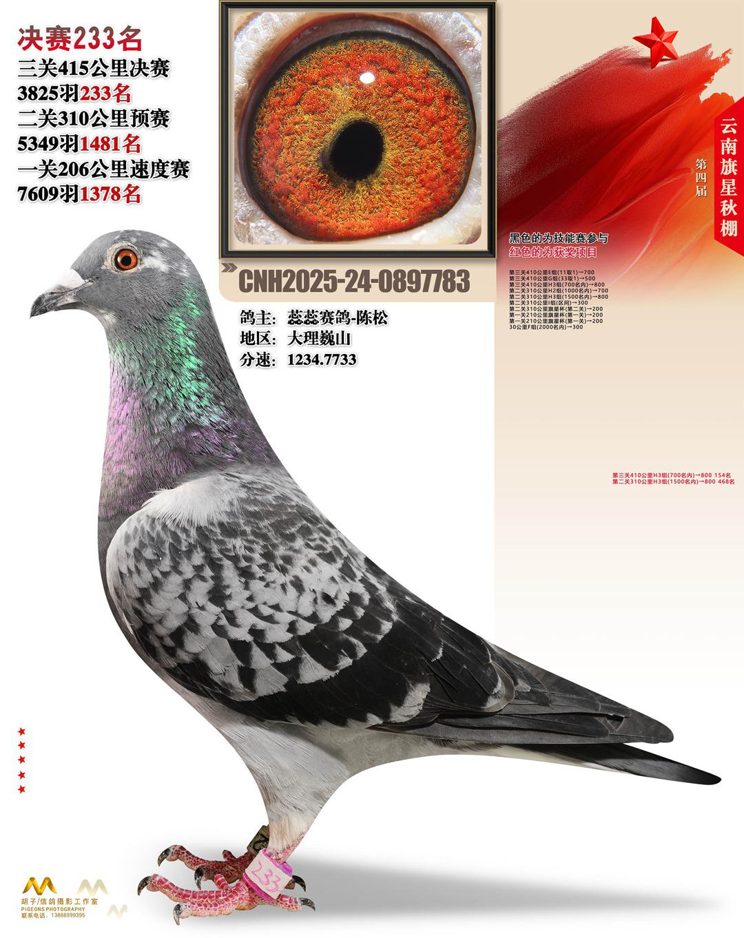 云南大理旗星赛鸽中心2025决赛233名蕊蕊赛鸽-陈松24-0897783大理巍山获奖鸽展示!